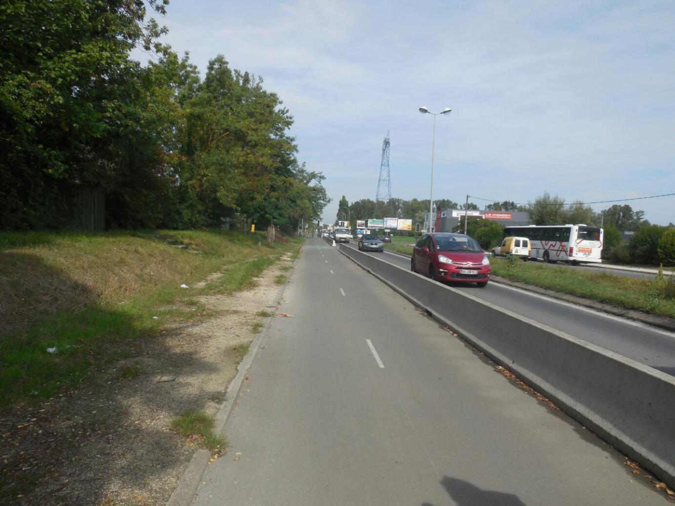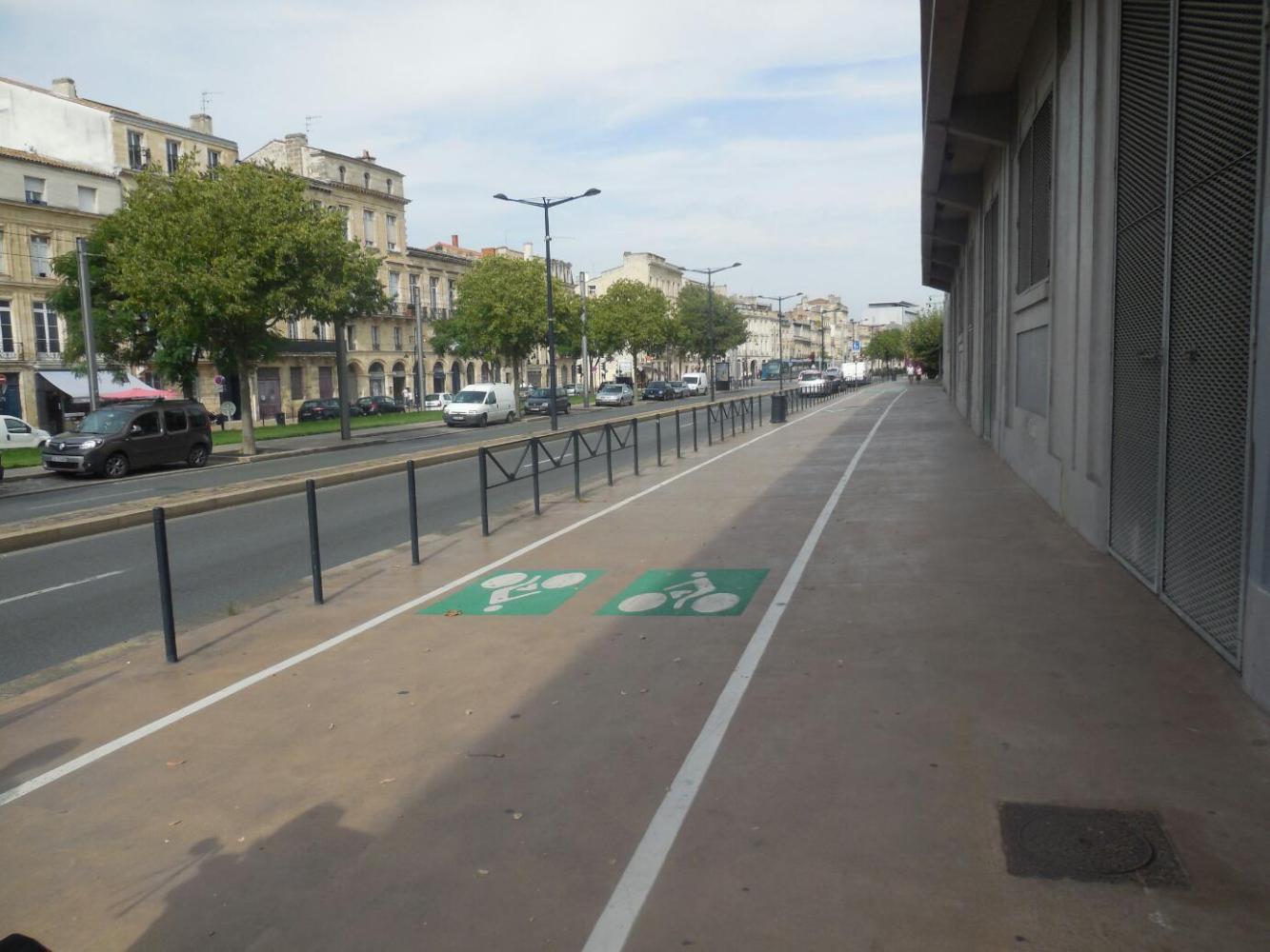 "All over" of course, only applies to the bike path, because as mentioned, it dropped us into Bordeaux. (OK, the editorial board says I should mention getting lost. So to be perfectly accurate, the path dropped us into a "rond point", with ambiguous signage about how to proceed. We chose poorly, and ended up sliding 2 km down D113, before Dodie slammed on the brakes and declared she was too frightened by the cars to proceed. I said, let's look on the tablet for a way forward. She said, "I'm for going back". Guess which way we went! Actually, it was too scary to go straight back, so we took a side road, and got double lost. The GPS did eventually take us to the bike path by the river, and that path took us into the city - as claimed, before I added this paragraph.