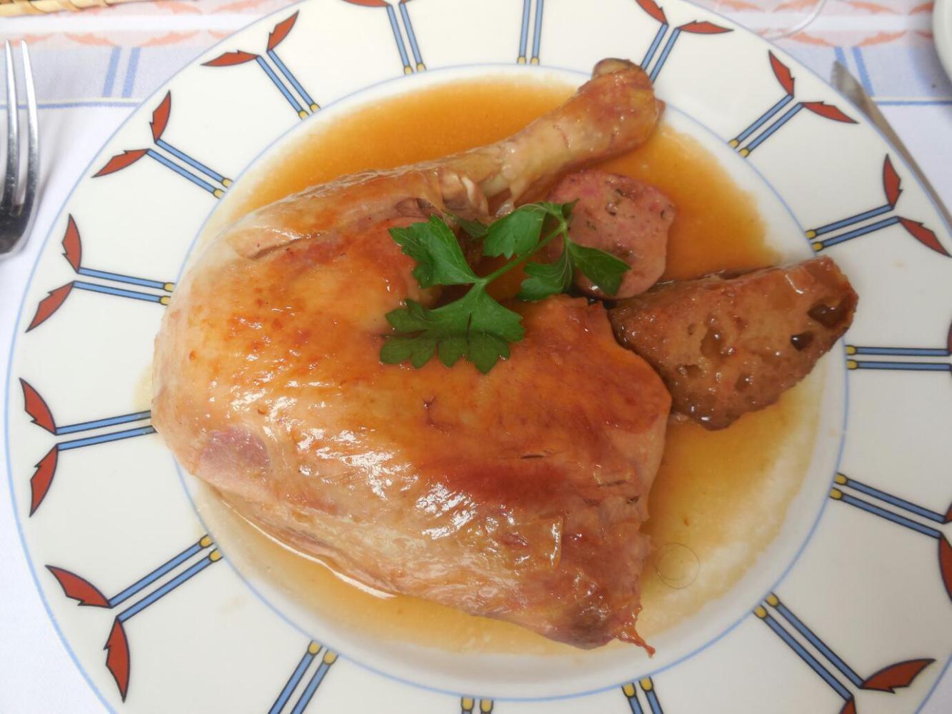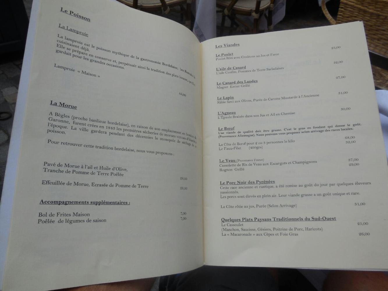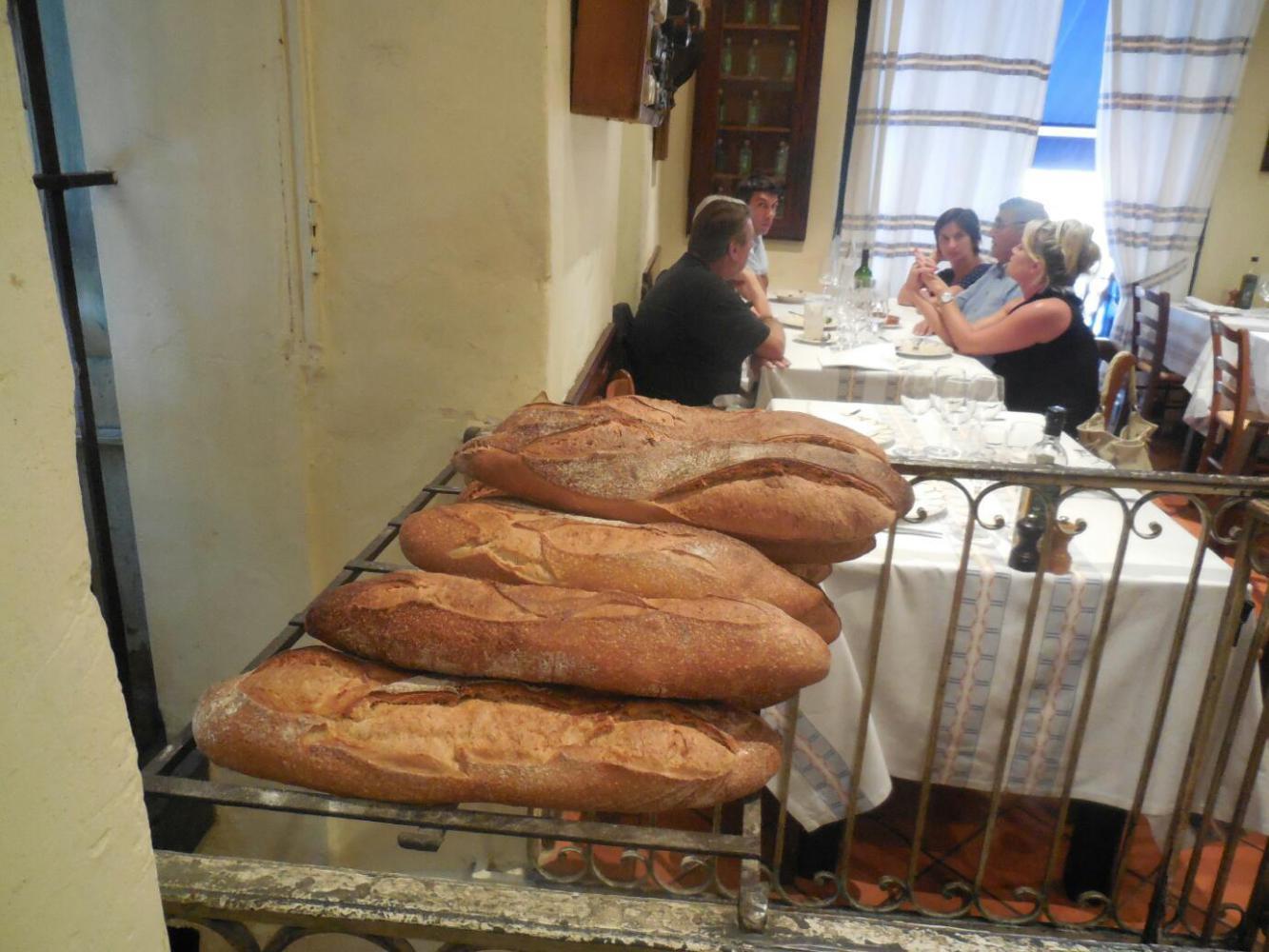 Well, one possible reason could be the typical €30 price a la carte. On the other hand, we had just spent two nights wild camping, eating crackers and the like. The restaurant demonstrated the amazing difference there can be between the same nominal thing made right, and not. What I got was essentially the same as at Carcassone - poulet et frites, with bread on the side. But, but, just the bread was a symphony, and it came with really real butter. The chicken was clearly free range, firm yet tender, and flavourful. And the frites - just greasy enough to be great. Dodie had lamb and cassoulet, and pronounced them superior.