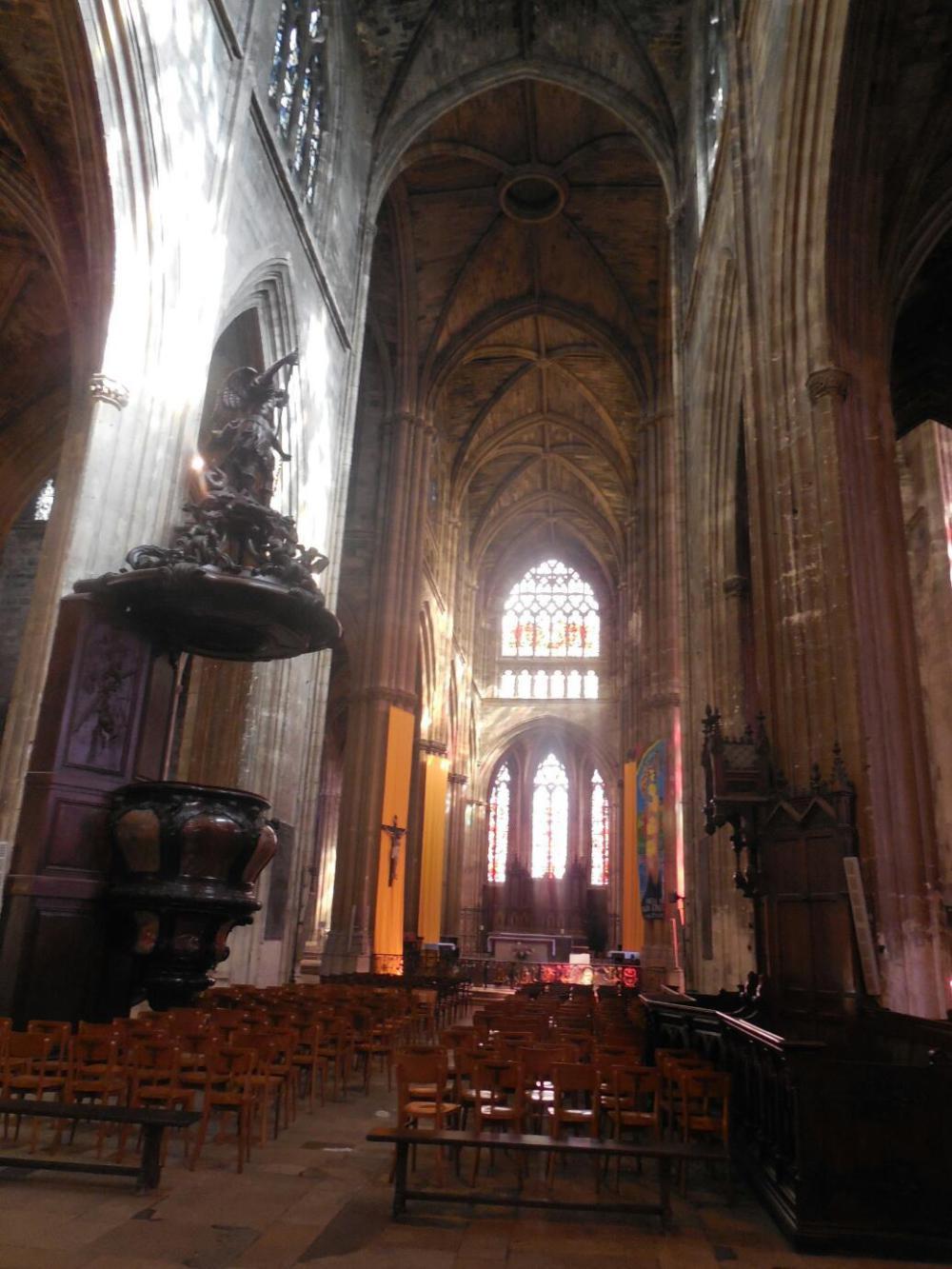 We continued a few streets over into the St Michel district, which features a basilica and the Fleche St Michel, a tall independently standing tower by the basilica. The church was built between the 14th and 17th centuries, in a gothic style. Lots of various churches were built in this area, starting in the 8th century, but the neighbourhood took off in the 14th century when it got included inside the city walls. In the next 100 years fraternal societies built side chapels on the church, for a total of seventeen. The tower was built from 1472, and is 114 metres high. They wanted 5 euros to climb it, just one of the reasons we gave that a miss!