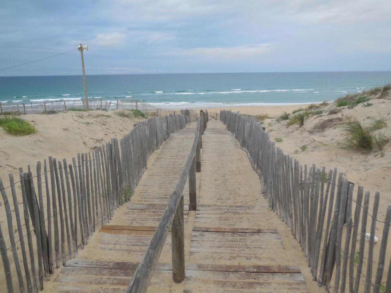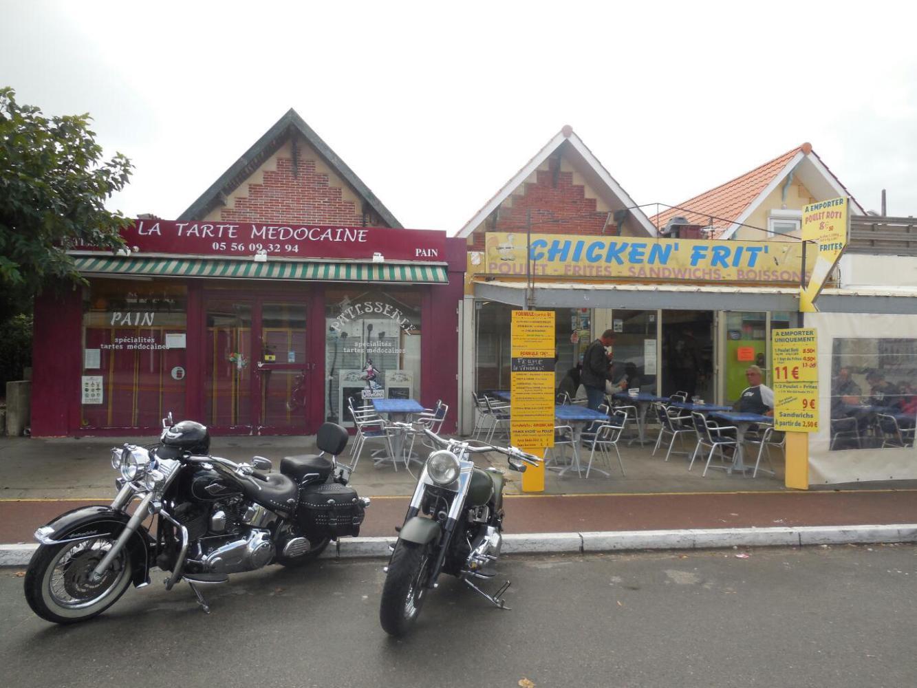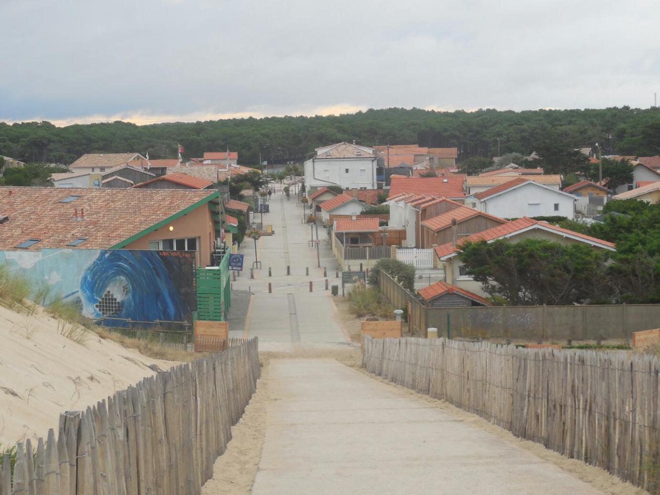 Morning gave us the chance to have a look around Carcans-Plage. What we found was a little beach town, with a half dozen restaurants, a tabagie, and a small grocery. The grocery had baguettes and croissants, and so was ok with us. The attendant looked bored, so I sympathized with him about the not exciting job. He enthusiastically reported that the store was closing for the season, today. Later we saw a lot of stuff already sealed up, including several campings. Wild camping may become more necessary for us in the coming two weeks.