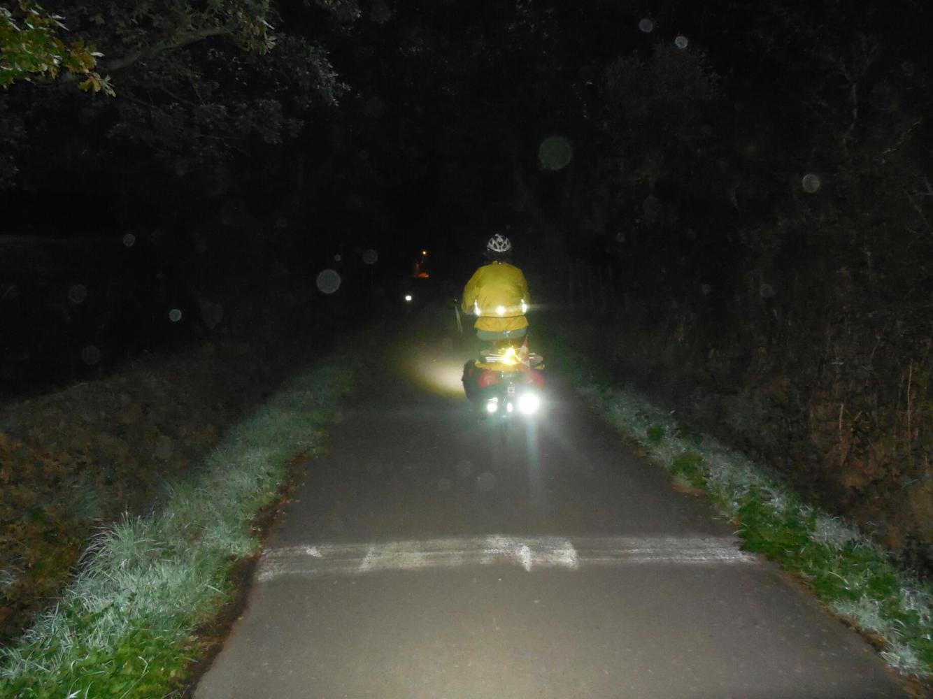 We started out early, which at this time of year means cycling in the dark. We had had enough of the big road, so we searched out and followed the Velocéan track. This was fine, except for barricades that were all but invisible in the dark. Fortunately, our lights are strong.