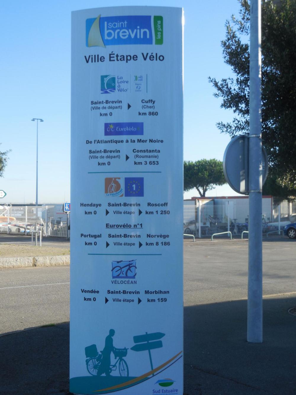 The beginning of this run, at St. Brevin, is significantly the beginning of Eurovelo 6, here called La Loire a Velo, which runs to Angers. St. Brevin is the junction of several of these routes, as they proudly describe on a large sign.