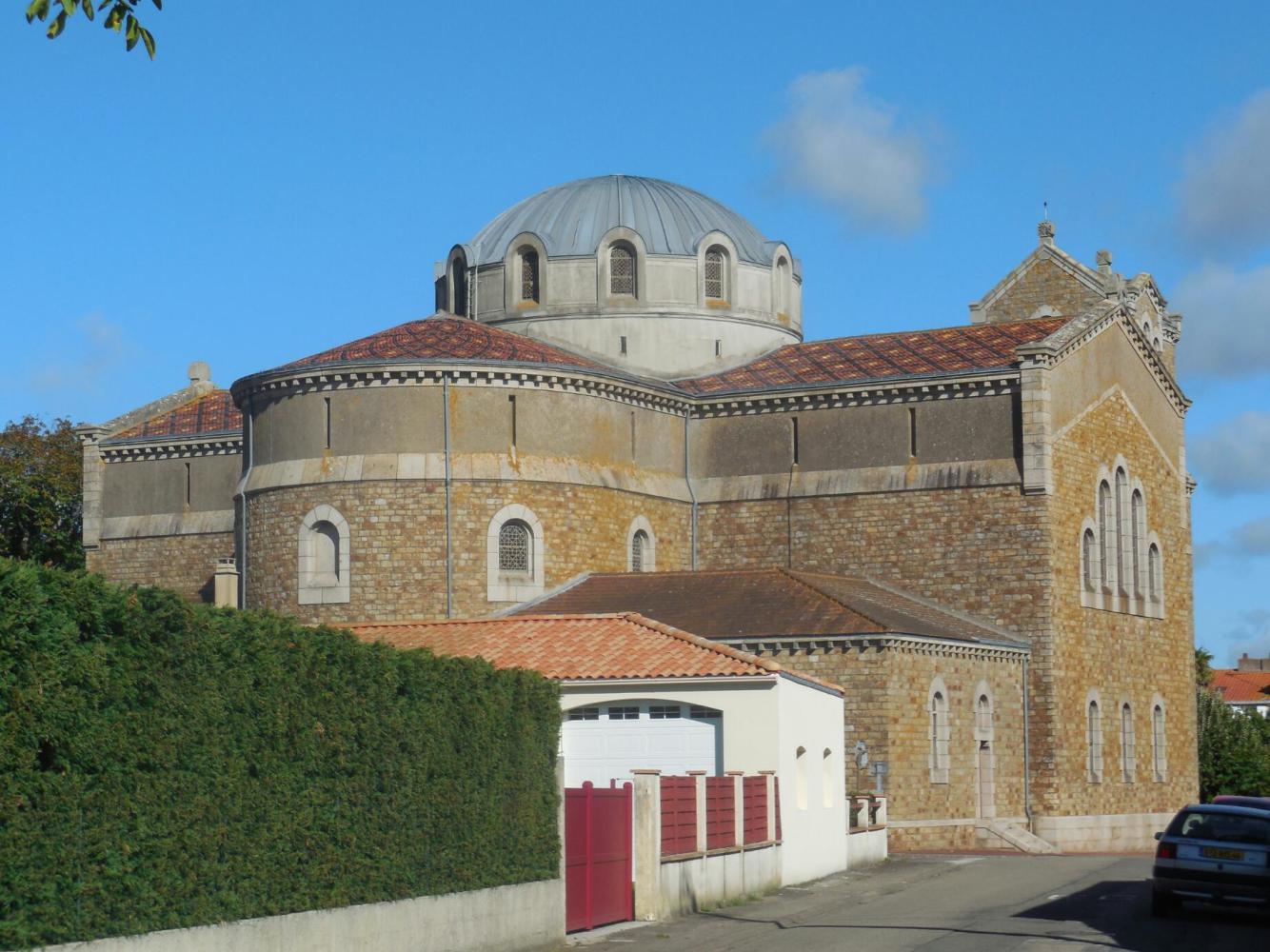 The first and only major town along the river is Paimboeuf. We had hoped to find a creperie here, since this is really almost Btittany, but we did not spot one. We did however spot the Byzantine style church, which uniquely ha that decorative roof style we have seen in Germany, and also a mosaic type interior.