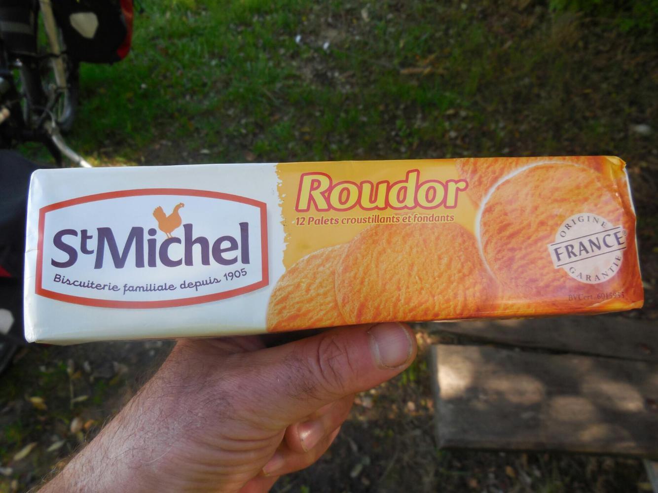 Michel of course understands cycling, and had brought along lots of snacks. This was great, since having failed to find a creperie we were starving. We gratefully accepted Michels pate, baguettes, St Michel biscuits, and anything else that could be found in his bag! We also made Michel detour to take us to a creperie. Only then were we ready to proceed!