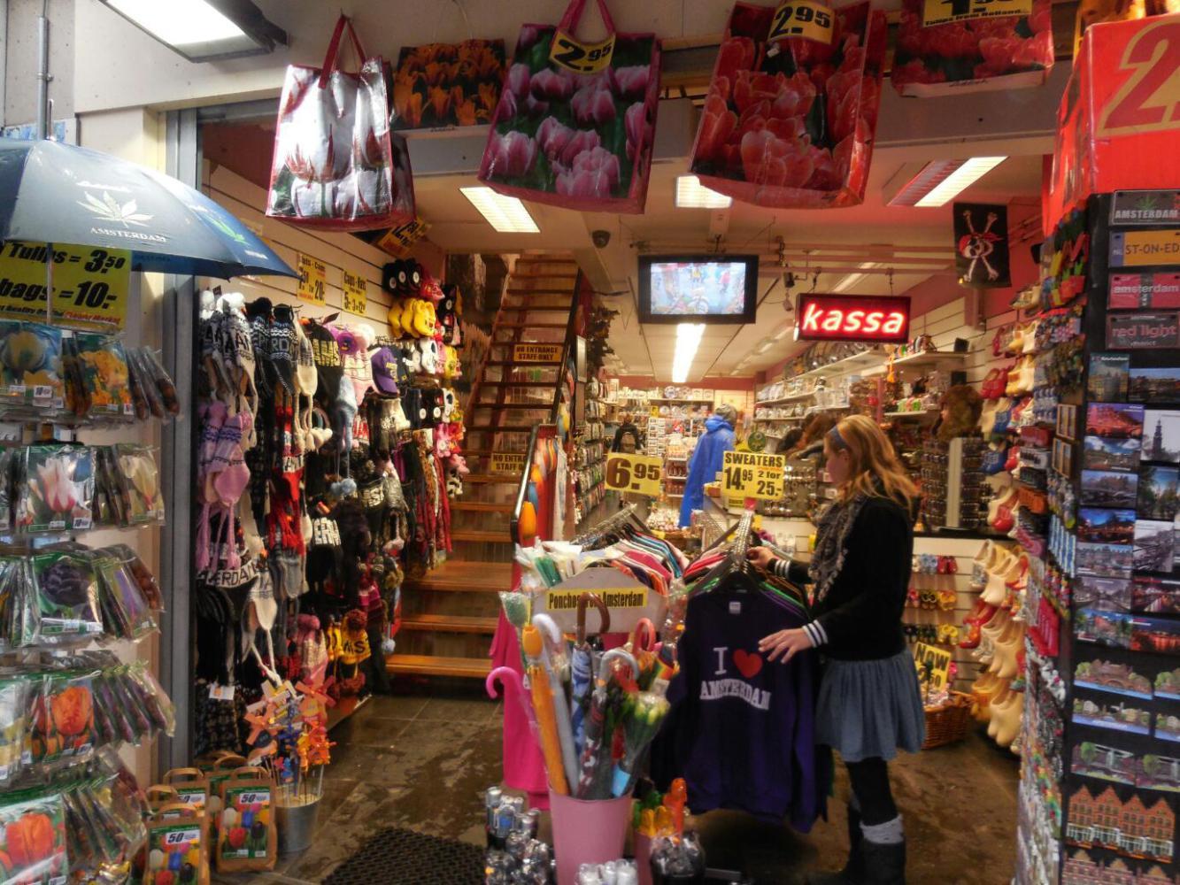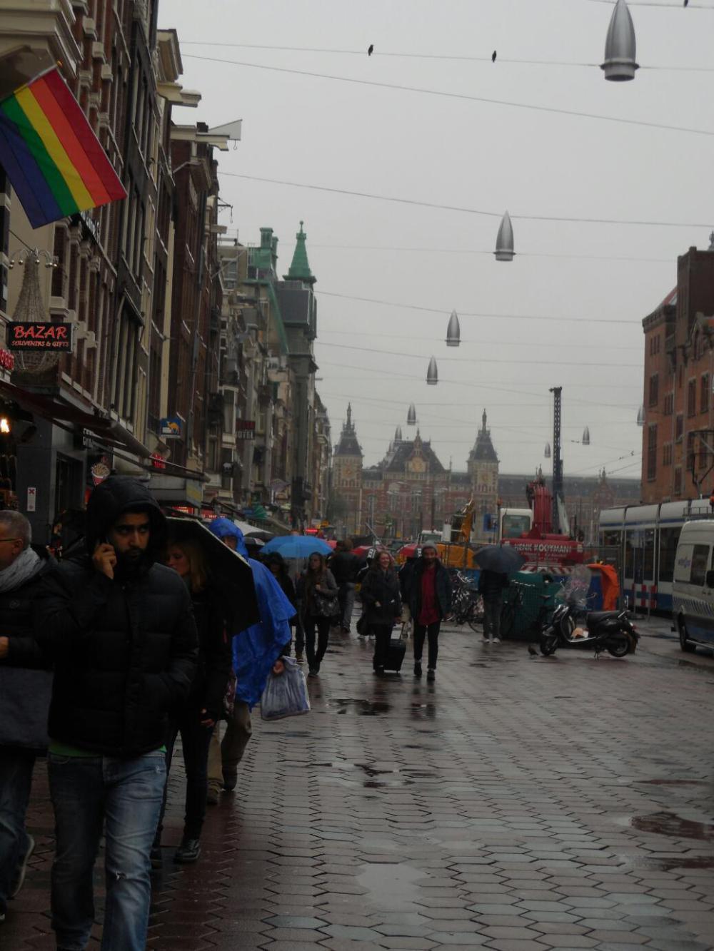 Once off the boat, our day looked pretty grim, with the soaking rain. One of us, and there is a small debate about which, came up with the idea of buying umbrellas. This was not too brilliant anyway,since everyone else on the streets had one! We headed down Damrak, the main street, and found that every store had a good selection of cheap umbrellas, next to the marijuana themed tee shirts and maps of the Red Light district.