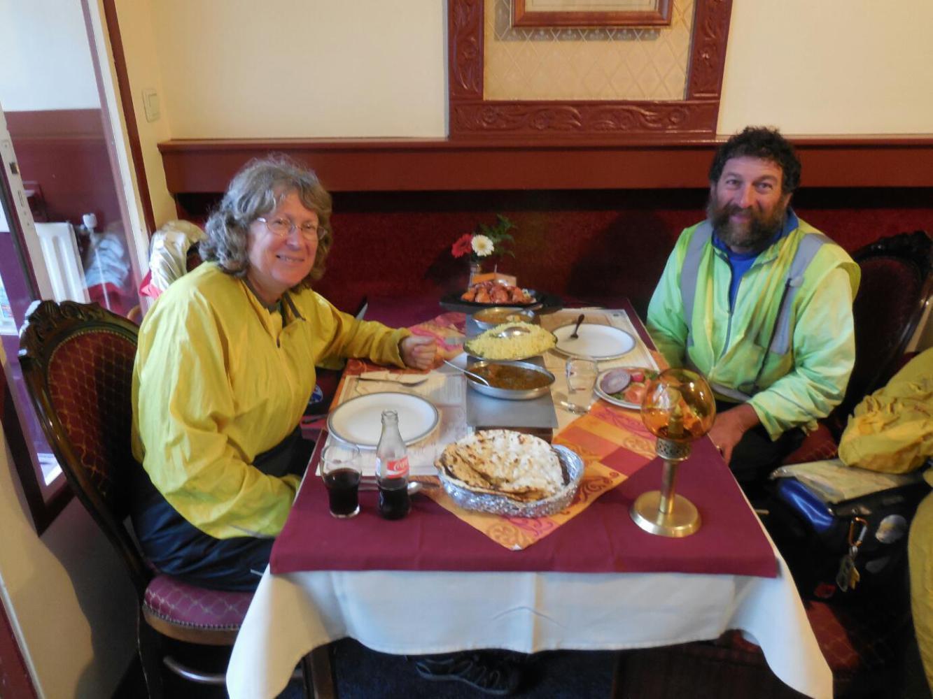 When we were done what we had ordered, hot milk chai appeared, just right for the cool day. In summary, a perfect Indian meal. Our waiter then accompanied us to the door and literally waved us goodbye. Cool.