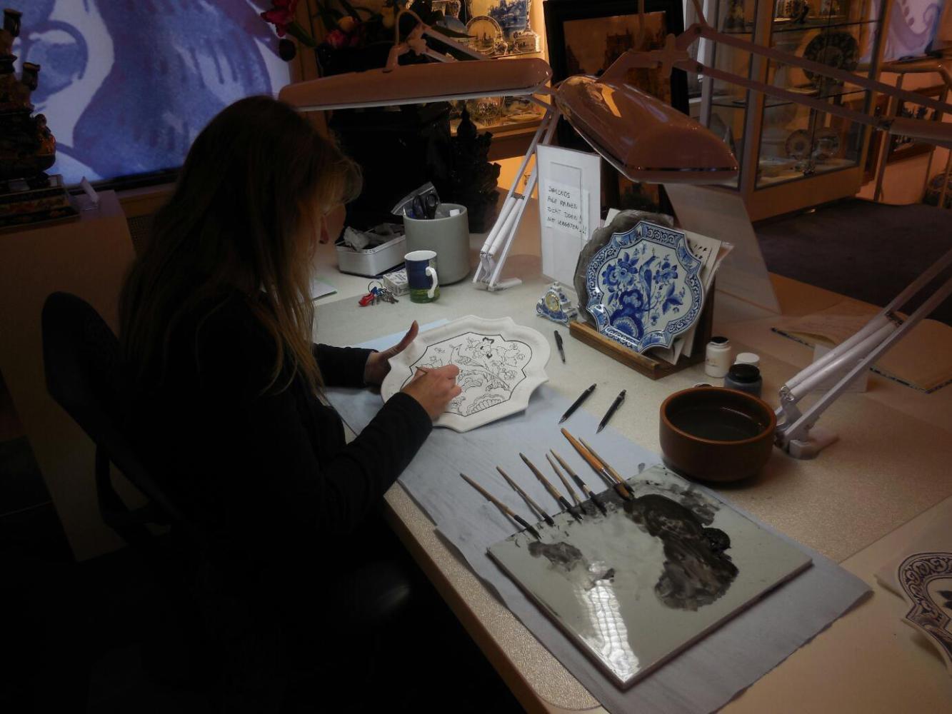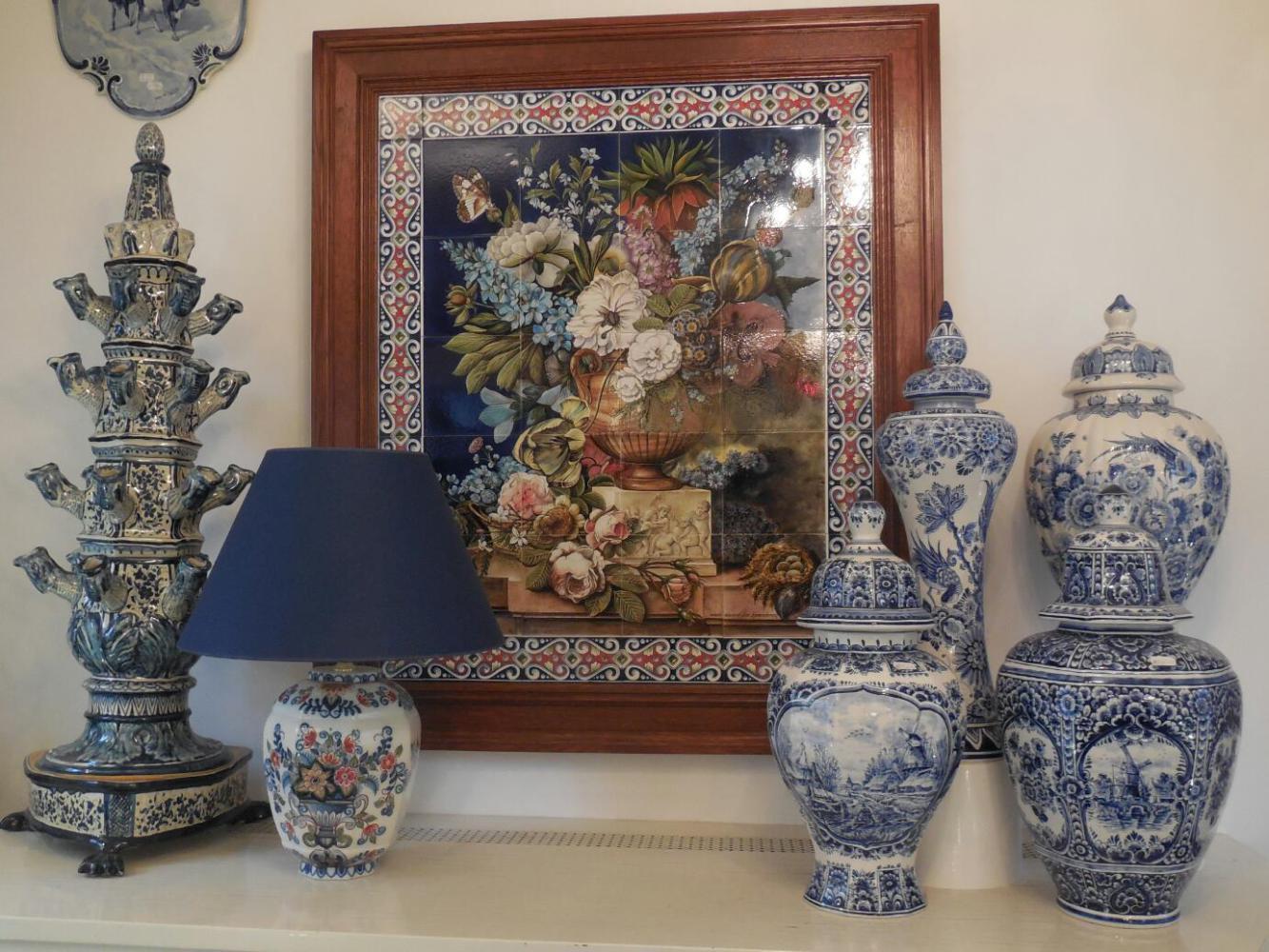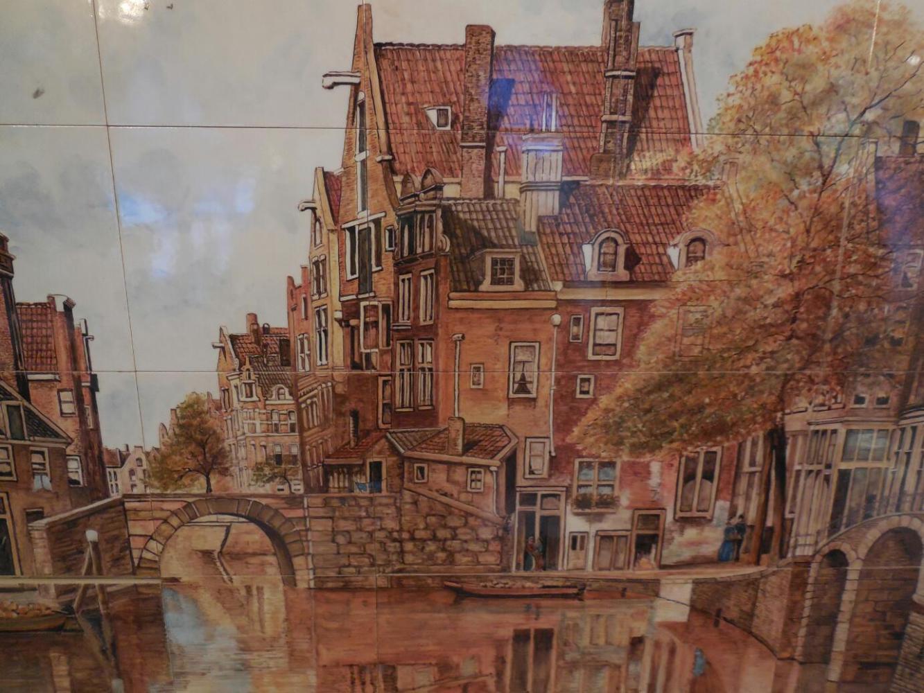 Fortified by hot food and sheltered by umbrellas, we continued walking through town. Still no museums, though. Grampies are real country bumpkins. One quasi museum was the Delft porcelain shop. Delftware originated around the 16th century, no doubt influenced by Chinese pottery. At its peak, there were 30 companies producing the usually blue and white, hand painted pieces. Now, only six remain, of which Royal Delft is the best known. The shop had representation from all six, though, plus antique pieces. For the likes of Grampies, there was also some cheap stuff, much of it made by the six real companies, though. Prices for the really real stuff were like €75 for a mug and up to €20,000 for an elaborate multilevel tulip holder.