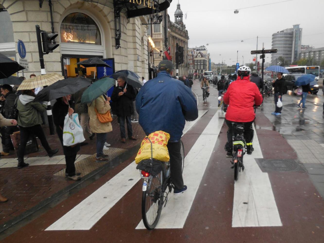 Today came up cold and raining in Amsterdam. No help for it, we put on all our clothes and cycled the 20 km in to town. Our "favourite" bike parking beside the train station was full. Yes full, no bike parking. How crazy is this place! Well, no problem, we moved over 100 meters to a place that did have space.