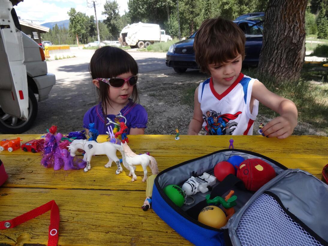 The gas station/gift shop at St. Regis was also a good stop - kind of nostalgic. When we are on our own we always stop here, and always look at the toys and doodads, saying Öh, Avi and Violet would likee this" and "Oh, Avi and Violet would like that". Now, for the first time the real Avi and Violet were there to give their own assessment.