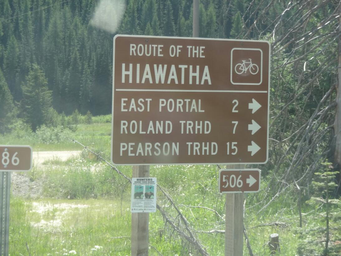 Before long we arrived at the now disappeared town of Taft, which is the start of the short road to the Hiawatha trail head. Short as this road is, it defeated us in 2011 as we tried to ascend it in an SUV - too much snow then, in May. So it was a bit triumphantly that we arrived at the trailhead and finally got to see what it was all about. One thing that it was about, as expected for the July 4 weekend, was about 200 other families, triumphant or otherwise, jamming up all available parking. That's ok, though, we are super tolerant when it comes to other cyclists.