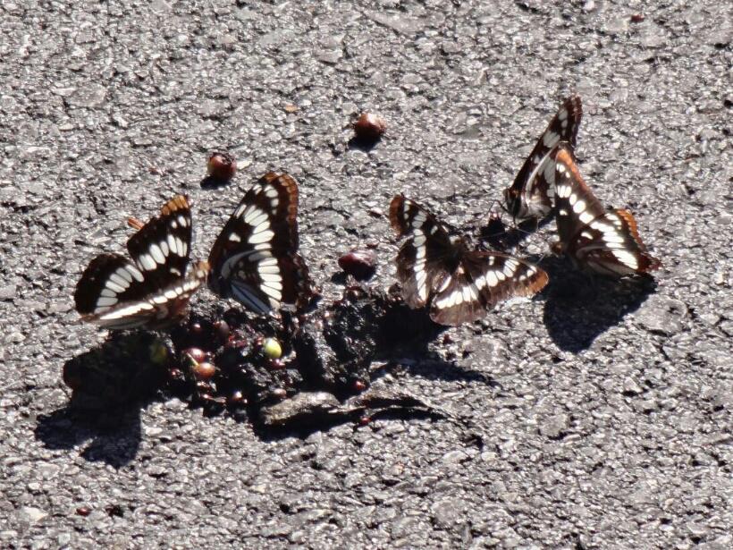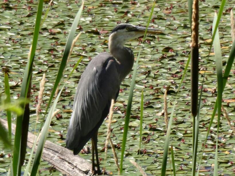 Across our path an elegant doe strolled, and as we looked on, two fawns followed. We came upon butterflies - so delicate and beautiful, dining on deer poop, and we spotted a heron in the lake.