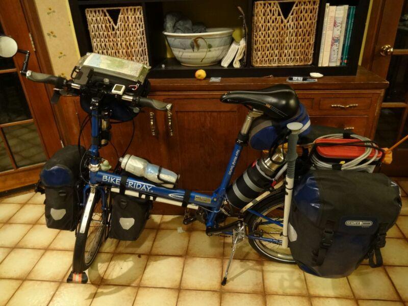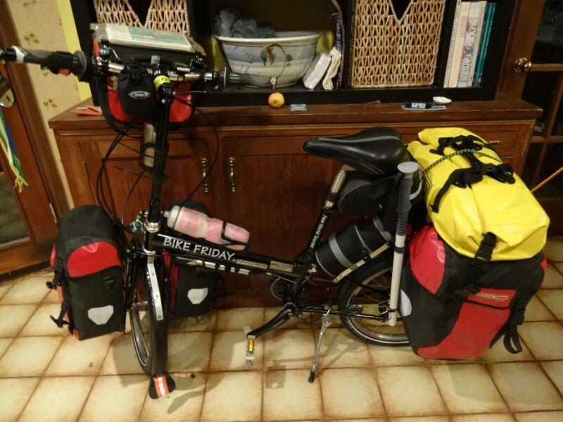 That said, it seems I have 51 pounds to carry, including 13 pounds of food, and the weight of the bags, but excluding water and stuff bolted to the bike, like the racks. Dodie has 42 1/2 pounds.