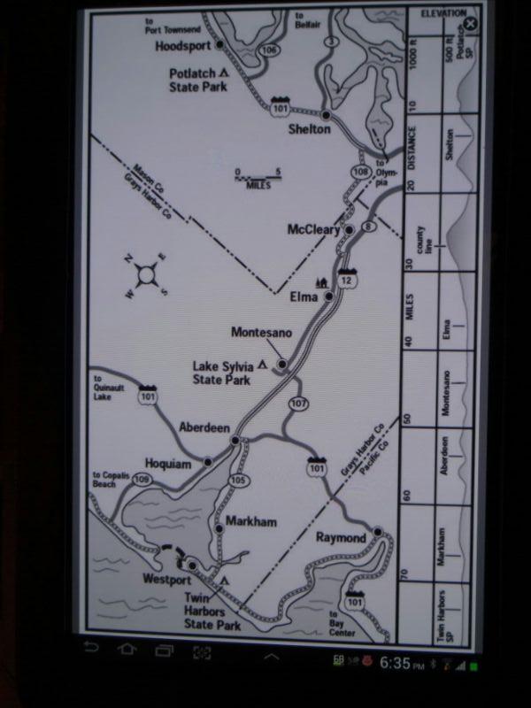 Evening was falling as we arrived at the outskirts of Hoodsport, and the Creekside Inn. This was a place we had called to check on, and the owner had an eye out for us. Unfortunately we found that this place has no wifi, pretty much a deal breaker until we whip AT&T into shape about 3G service for the tablet. At this point the fellow, Leo Morand, phoned all the surrounding motels for us, until we nailed down the Sunrise, with a reasonable price and wifi. We had a look at the room that would have been ours at Creekside, and it looked large and homey. We would certainly recommend it for that, and for its decent and friendly owners.