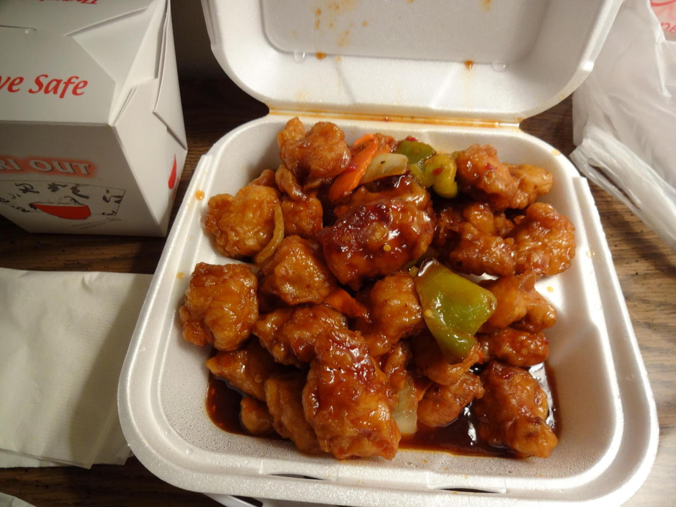 We ordered two dishes last night, and both portions were huge. So with the leftovers we will keep going on Chinese food for a while. Dodie will transform the Kung Pao Chicken into a hot soup, and cold General Tso's is always good!