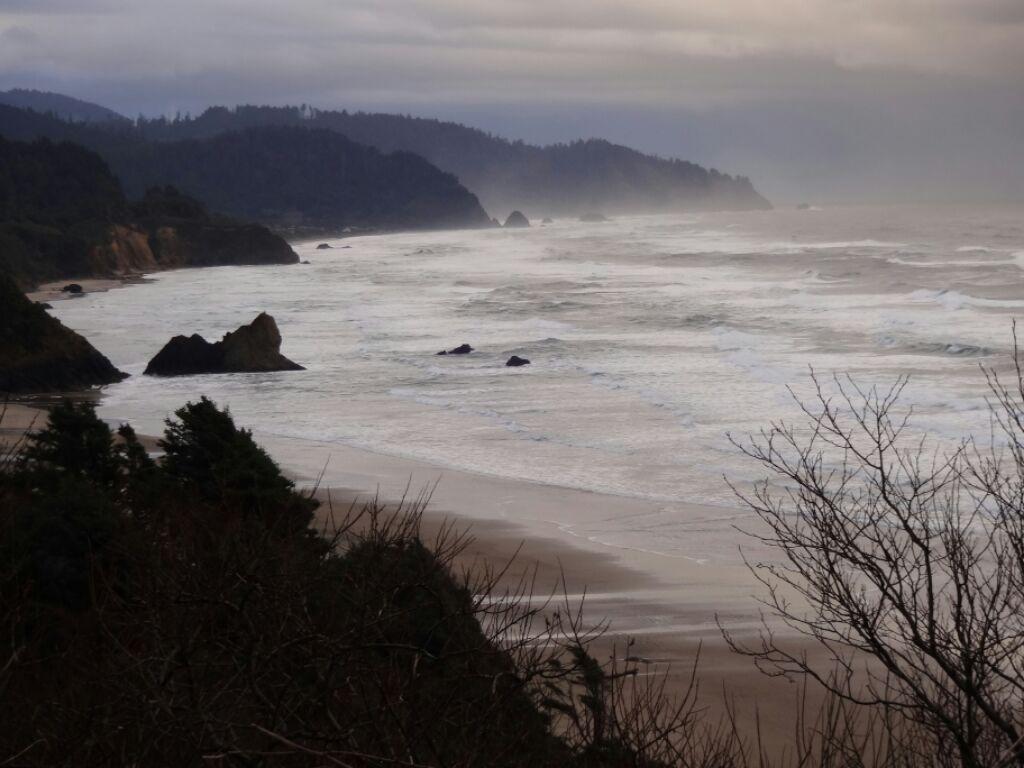 Although we certainly view any place with a roof and a heater as a super refuge, we are not beyond feeling crabby when the dollars spent at a motel do not produce the expected luxuries. So it was last night at the McBee Cottages in Cannon Beach. The super small room had nothing like a microwave or kettle, and though very clean was also very old. What earned it this special reference in the blog, though, was faulty wifi. Or make that faulty wifi and the staff unwilling to look into the problem. This morning after walking down the street to get to wifi, we left McBee, with little regret (heater notwithstanding).
