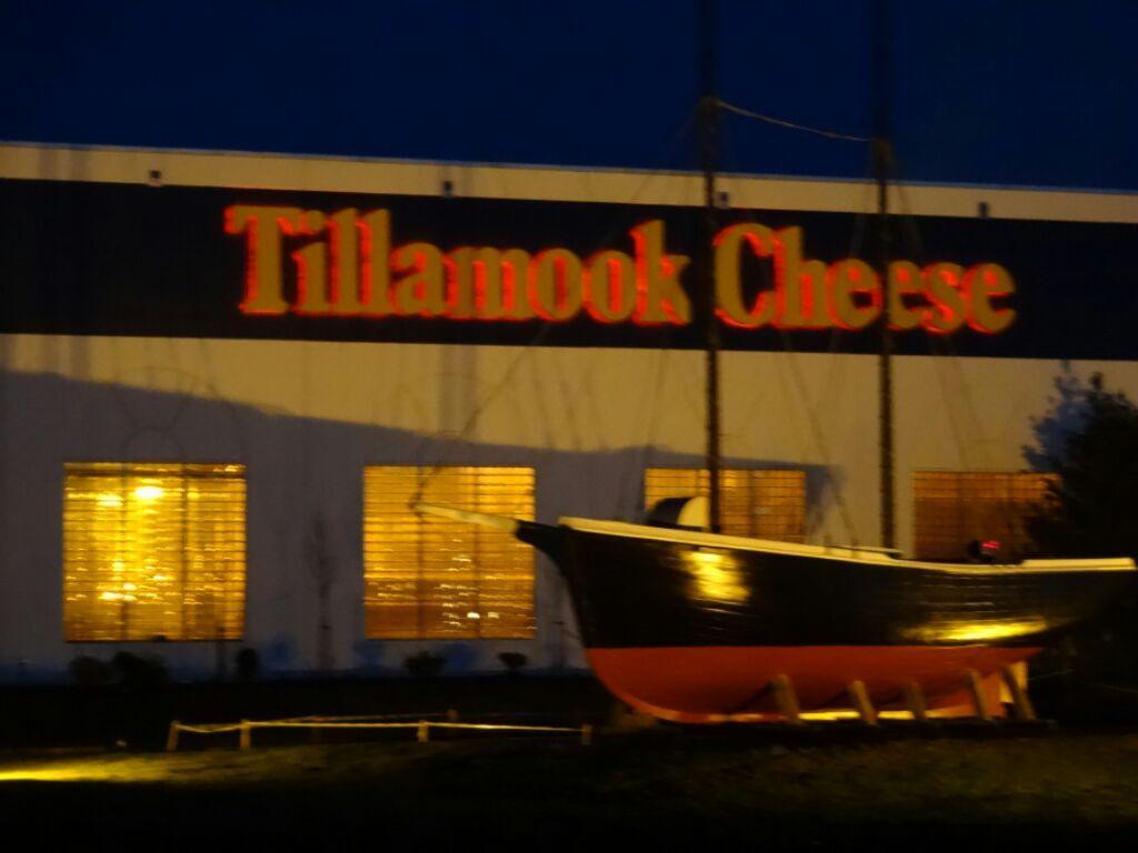 Before we could get too cold or scared, we did arrive opposite the famous Tillamook Cheese factory. This cheese is sold throughout the western states, and we always buy it because we like the name and the town, and because all the products are hormone free. Last Spring we toured the factory, and wrote it up in the Grampies on the Go - Again blog. This time, we just have a neon lit photo of the outside.