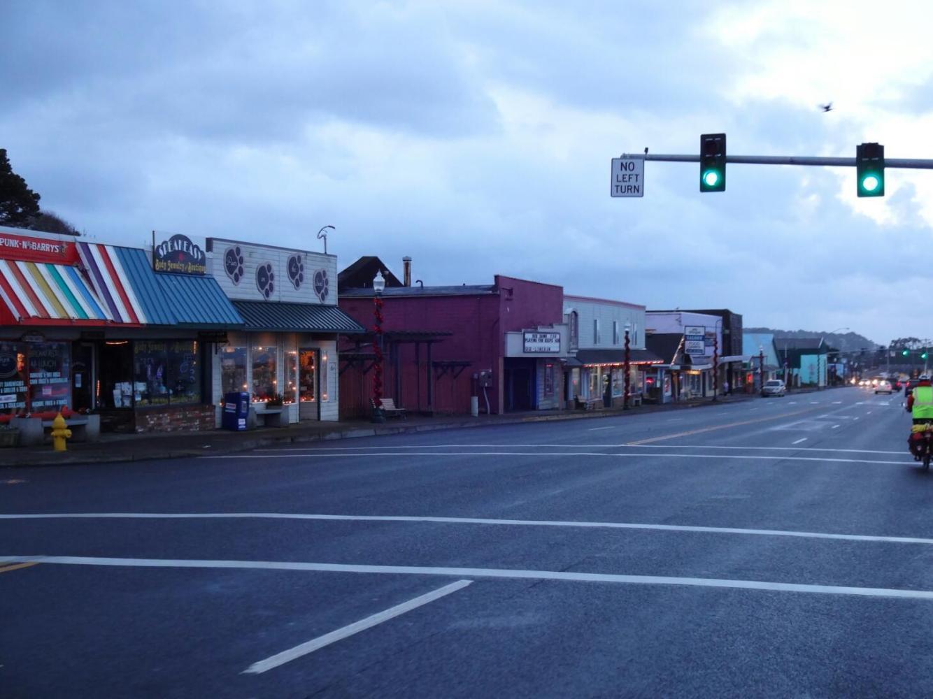 With no rain falling and only a fresh south wind, we were ready to go this morning as soon as there was enough light to see by. We passed along the strip that comprises Lincoln City, and finally snapped a photo at the part that seemed densest. So that is what we will designate "downtown".