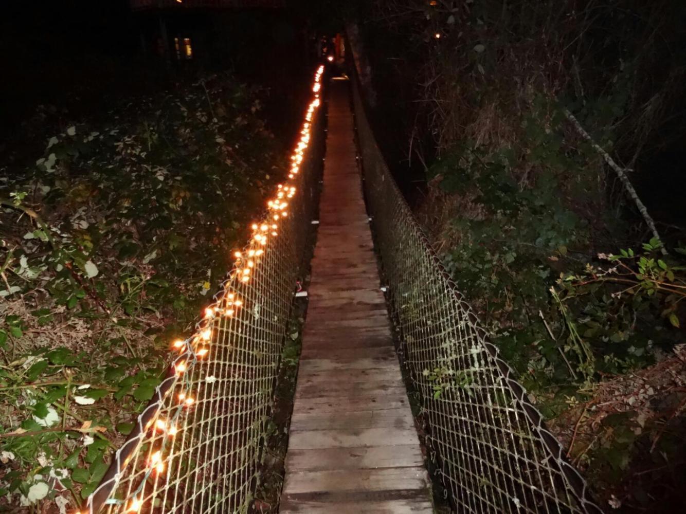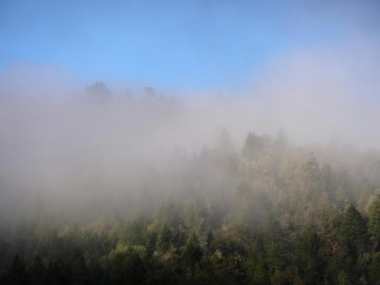 With headlights on, we made out way along the coast, to the Howard Creek Ranch, the B&B we had located. In the dark, it was bit hard to find, and when we arrived, a bit hard to get the idea of where we had really arrived to. There were two buildings, joined by a suspension bridge.The bridge made Dodie really nervous, as it tended to sway and shimmy. But the buildings and place (such as we have been able to see them) made up for any kms out on the road. Were we are used to be a huge barn, but it has been totally redone by the owners here. Now it is all stained wood, windows, and skylights. Inside the furnishings are antique wood tables, wood stoves, shelves of books, leather chairs and sofas, staircases going everywhere, decks. Our room adjoins a library which adjoins a large dining area, which adjoins the bit with our hot tub! I am sitting in a large leather chair by a woodstove, with Dodie keeping me company by napping on the leather sofa. She is sleepy. The hot tub and Leggett hill will do that to you.