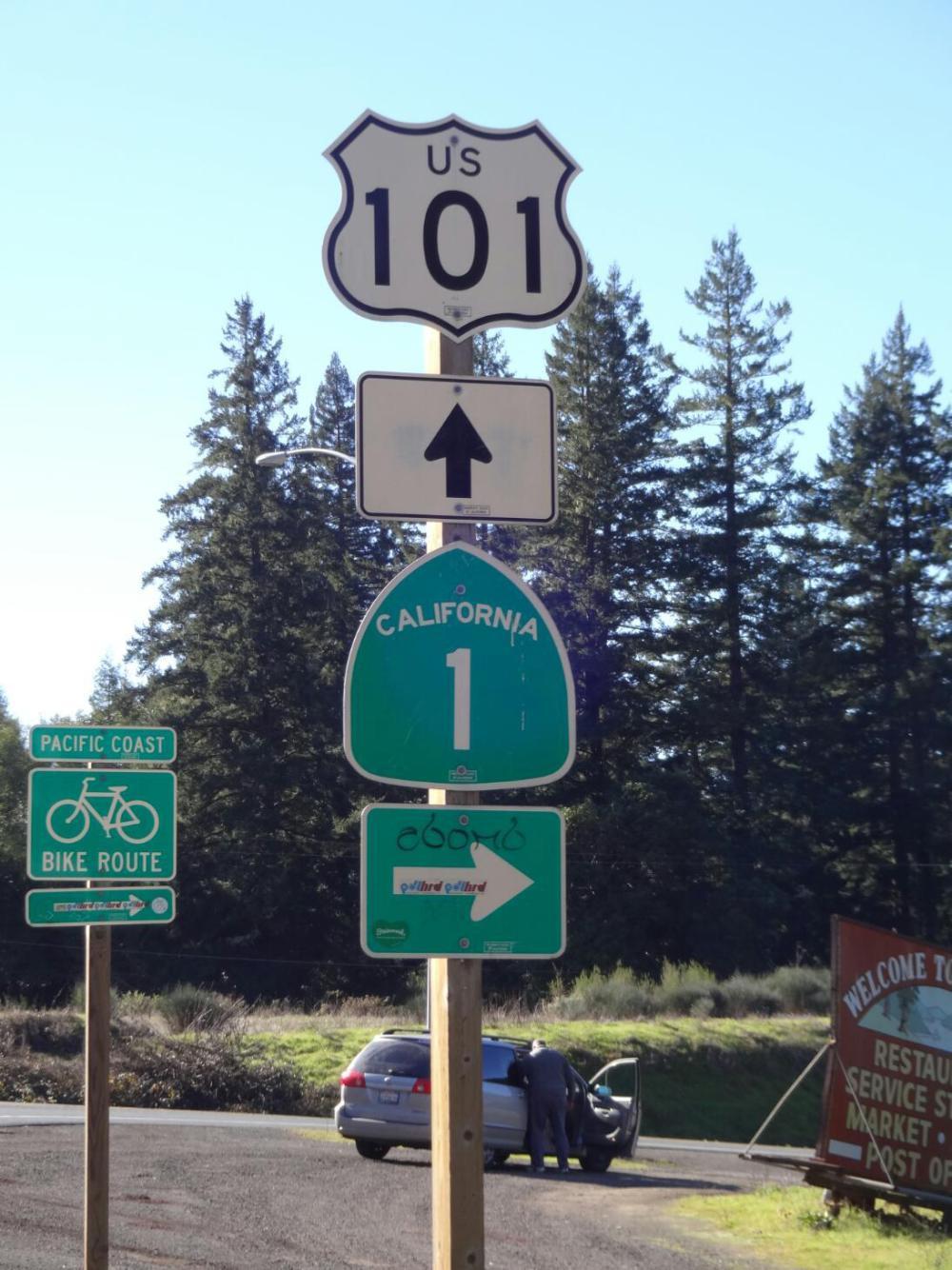 When we reached Leggett, it was time to say goodbye to 101, which had been our friend all the way from Port Angeles. 101 would now zoom straight south to San Francisco, while we would head over to the coast on route 1, 1 would now be our ticket the rest of the way south.