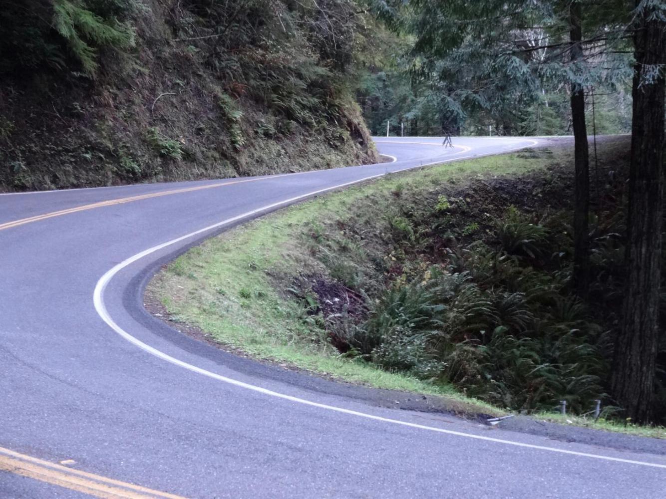 About the road, we stuck on 101 out of Garberville and followed it straight to the infamous Leggett. Leggett is infamous because there starts a really darn tough 30-40 km of road that leads back over to the coast. For us the logistics of this were almost a game changer. We could find no accommodation in Leggett (the couple that do exist were closed), and at first nothing in Westport, the first place on the coast. But when we did locate an open B&B in Westport, all we needed was to do 80 km over nasty hills to reach it. We did manage that, so our tour stayed on track.