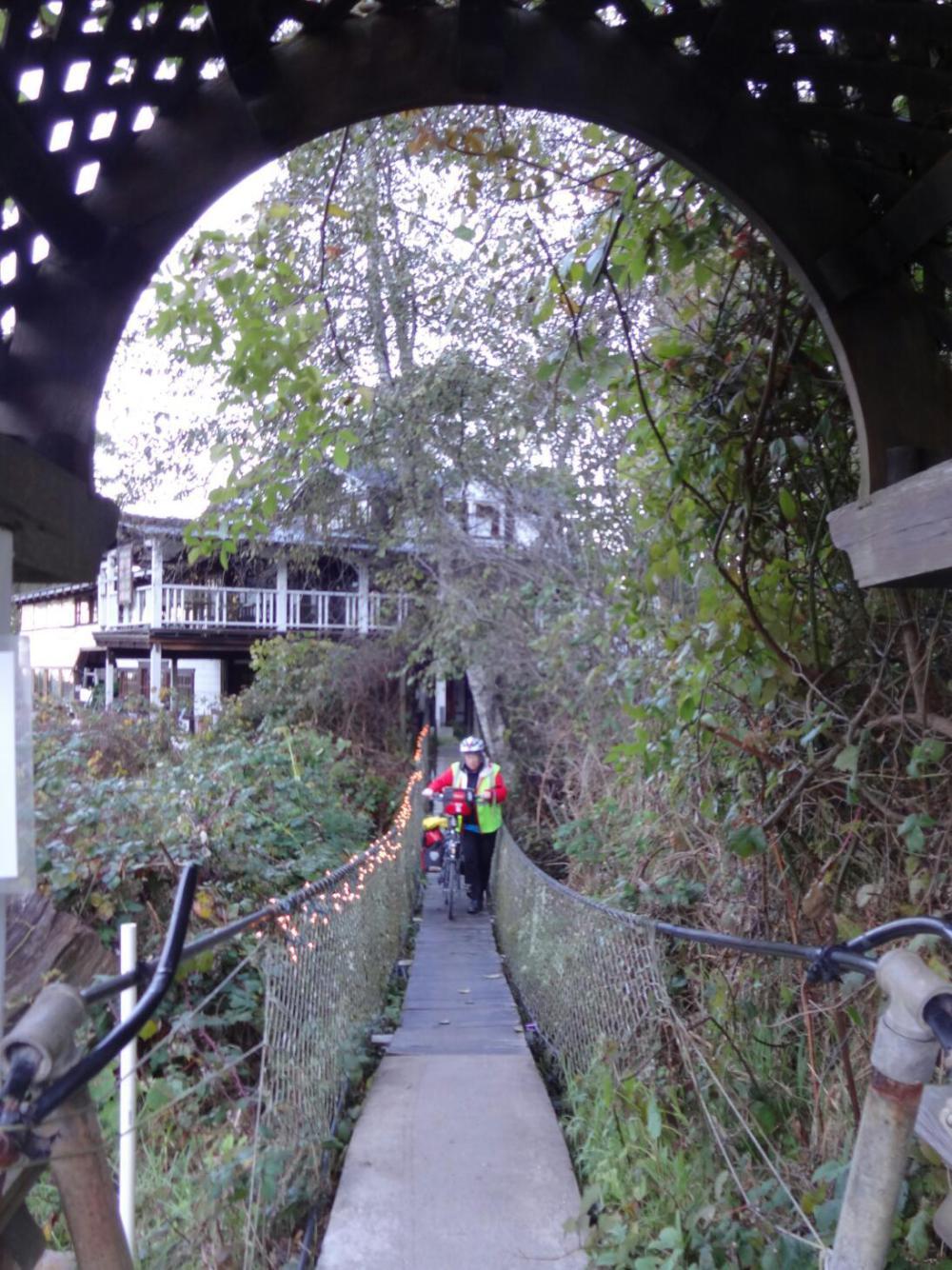 So here's how it looks from my oak table, under the stained glass lamp, in the heritage hotel: Whereas we have jumped through storms and traffic and hills, we are about to fall over a fiscal cliff! Our new plan is to cycle back to Fort Bragg tomorrow, and check in to the Motel 6 ($55) to think about it. What we will probably think about is not how to mortgage the farm to continue cycling around San Francisco, but whether to return home, or have a crack at a different section of coast. Either way, we would need some form of transport, so assuming the Motel 6 wifi does reach our room for the $55, we will research a mode and a route.