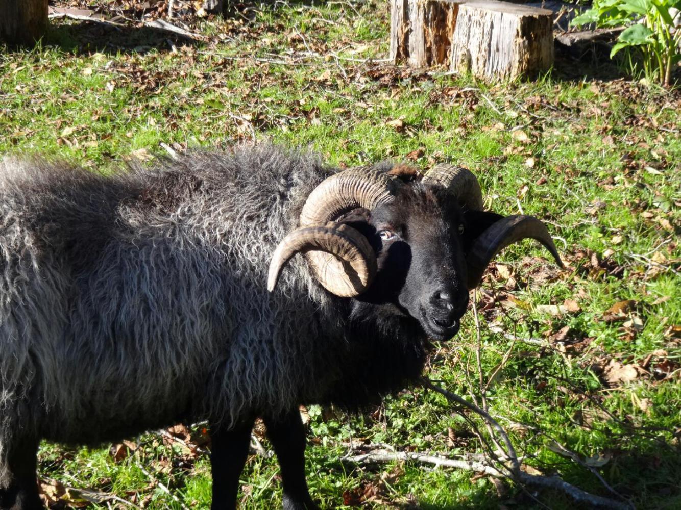 Morning light showed us more of our surroundings. We could see lots of tall eucalyptus standing around, the large building we had slept in, the farmhouse - which is across the stream, and a flock of sheep grazing in the front yard.