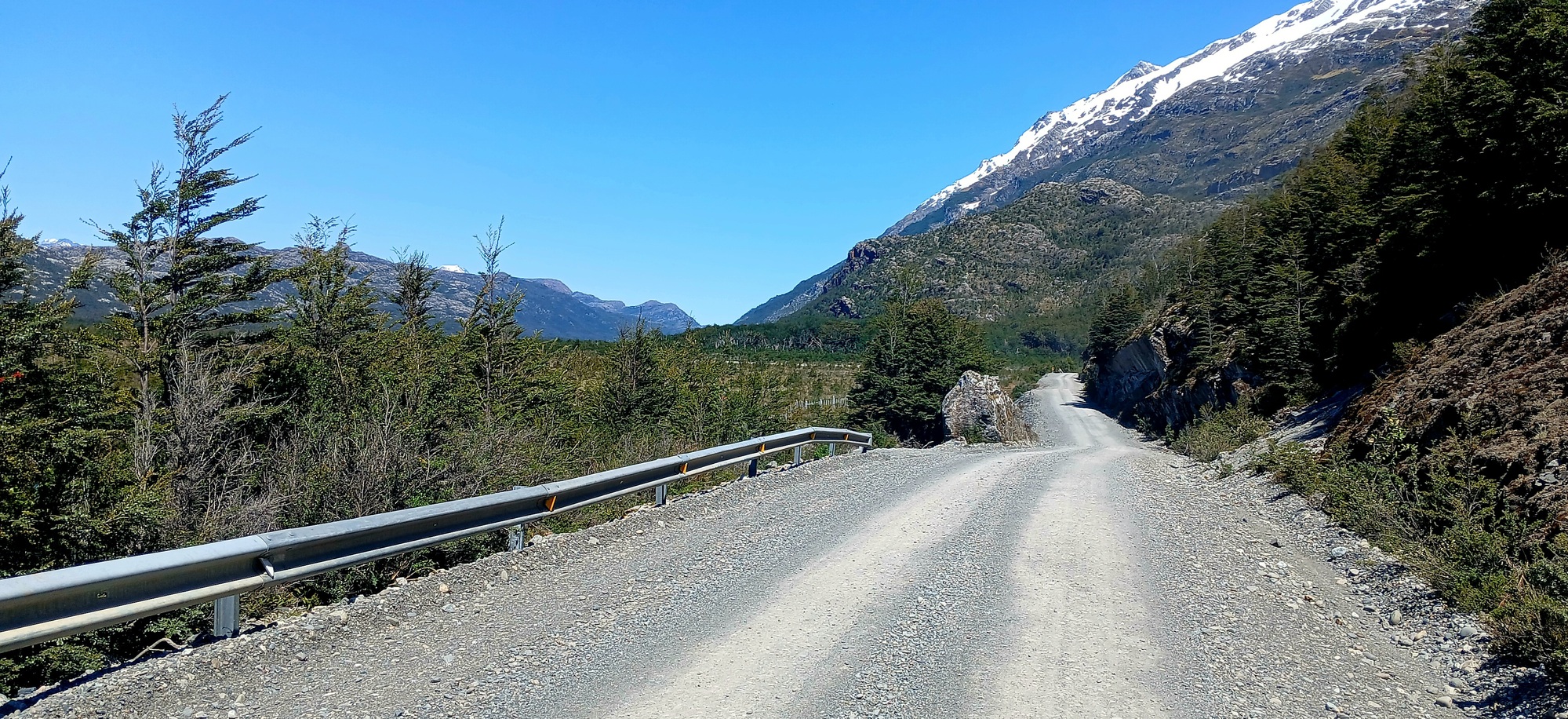 The gravel road is in good order and I reckon 87 kilometres, the distance to Villa O Higgins, is possible today. Yesterday evening there was no traffic, possibly due to the last ferry of the day having gone and I thought today there would only be a rush of traffic following each ferry disembarkation. But shortly after starting, two big trucks pass, filling the air with dust in their wake and shortly, there are quite a few car tourists coming the other way.