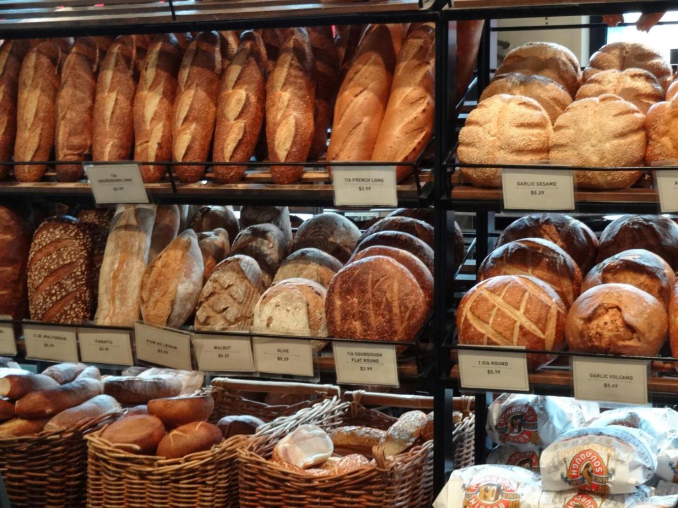 Boudin has a huge bakery/restaurant in the heart of Fisherman's Wharf. Here is sourdough bread in many shapes. Shape is the main thing we noticed, not so much various grain types or flavors, though there was representation from garlic, walnut, olive, and sesame. San Francisco sourdough is basically a white bread with a crackly crust and the distinctive slightly sour flavour of the leavening starter. It is absolutely super, and if you get a soup or scrambled eggs in a "bowl" made from a small hollowed out one, you really have something. It is such a joy to experience something original, authentic, and high quality!