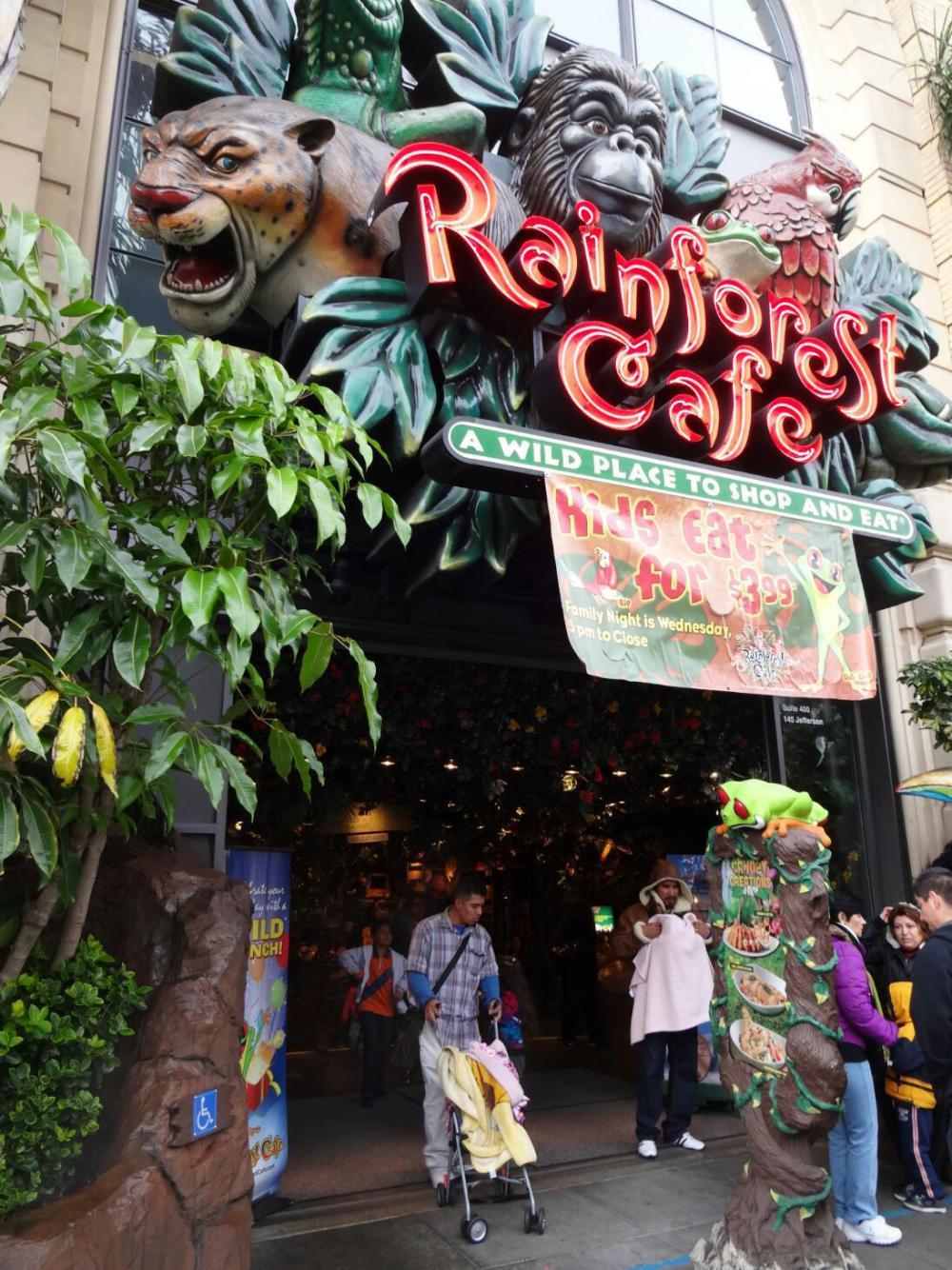 This is a chain, but quite fun. Inside it is all jungly decoration and jungle themed stuff for sale. Occasionally, thunder rolls through and the lights dim. There are animated jungle animals around, too, and fish. Looks great for kids.