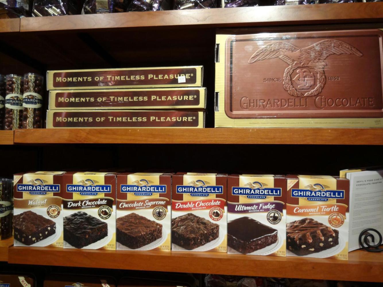 The original Ghirardelli factory complex is now an upscale retail area with at least three Ghirardelli chocolate outlets very near each other.