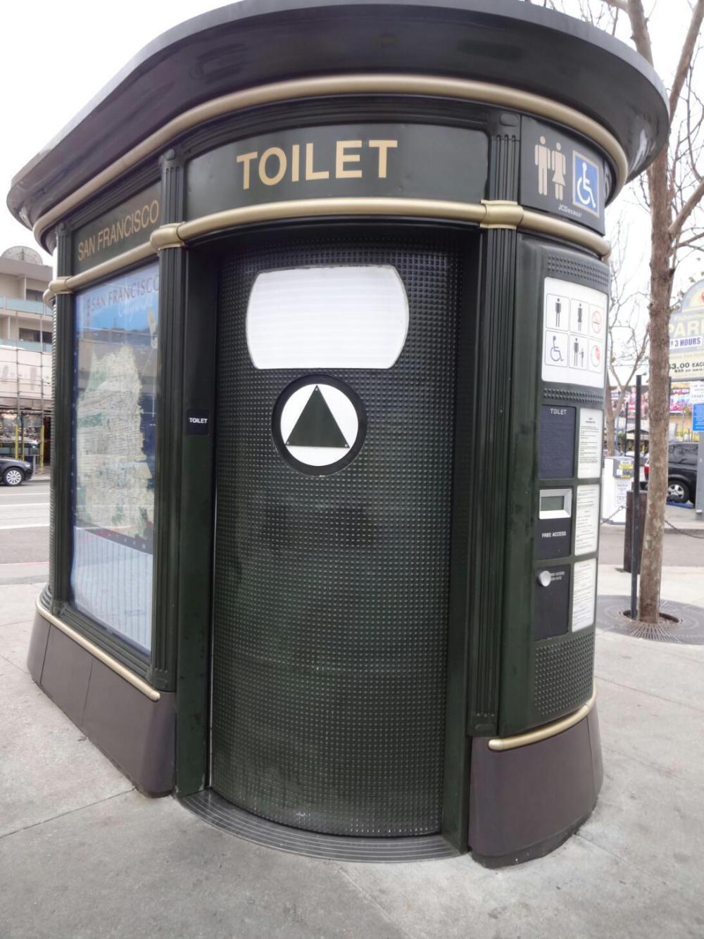 This automated toilet took a bit of study. It also locks itself (presumably only when unoccupied) and does something mysterious that the computer screen calls sanitizing.