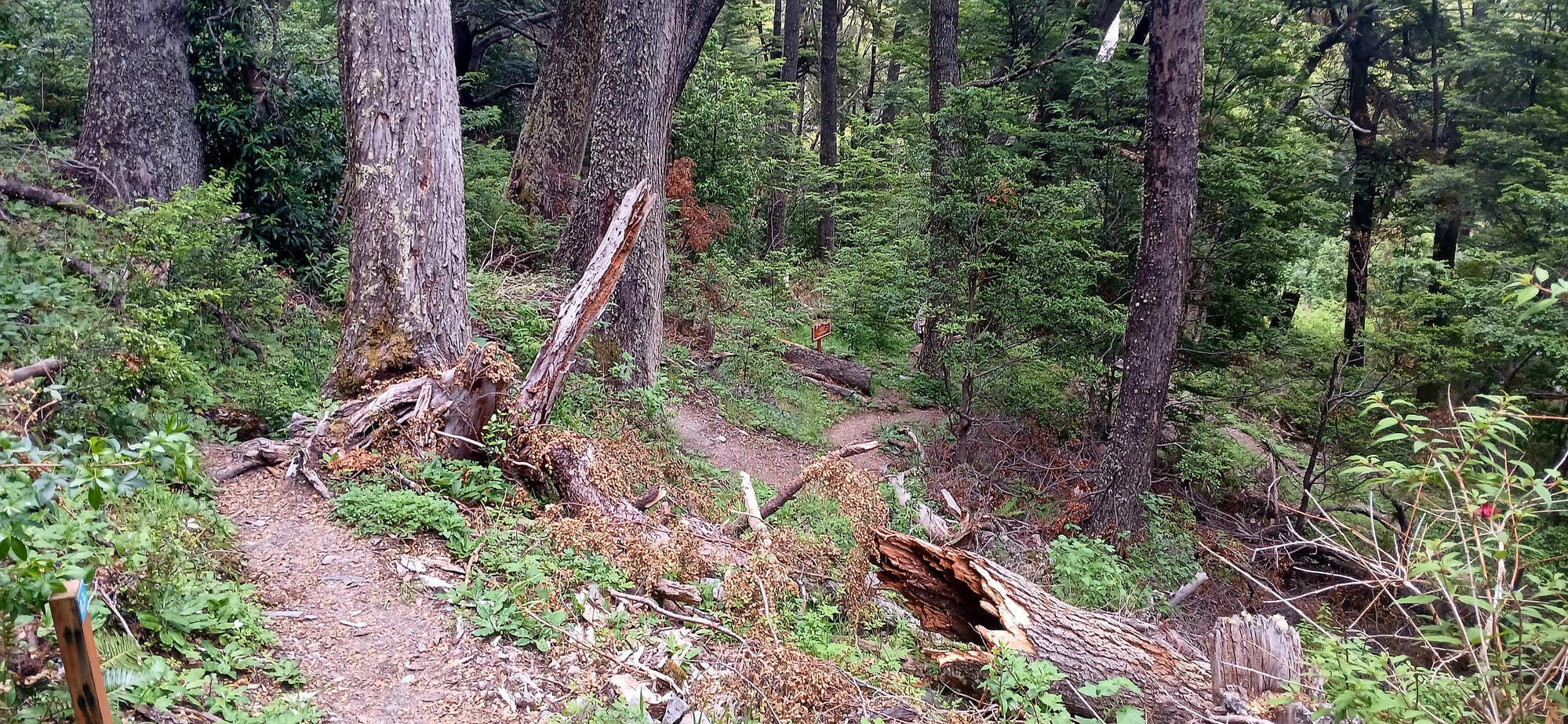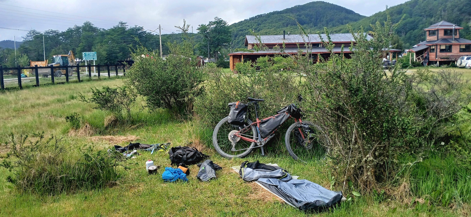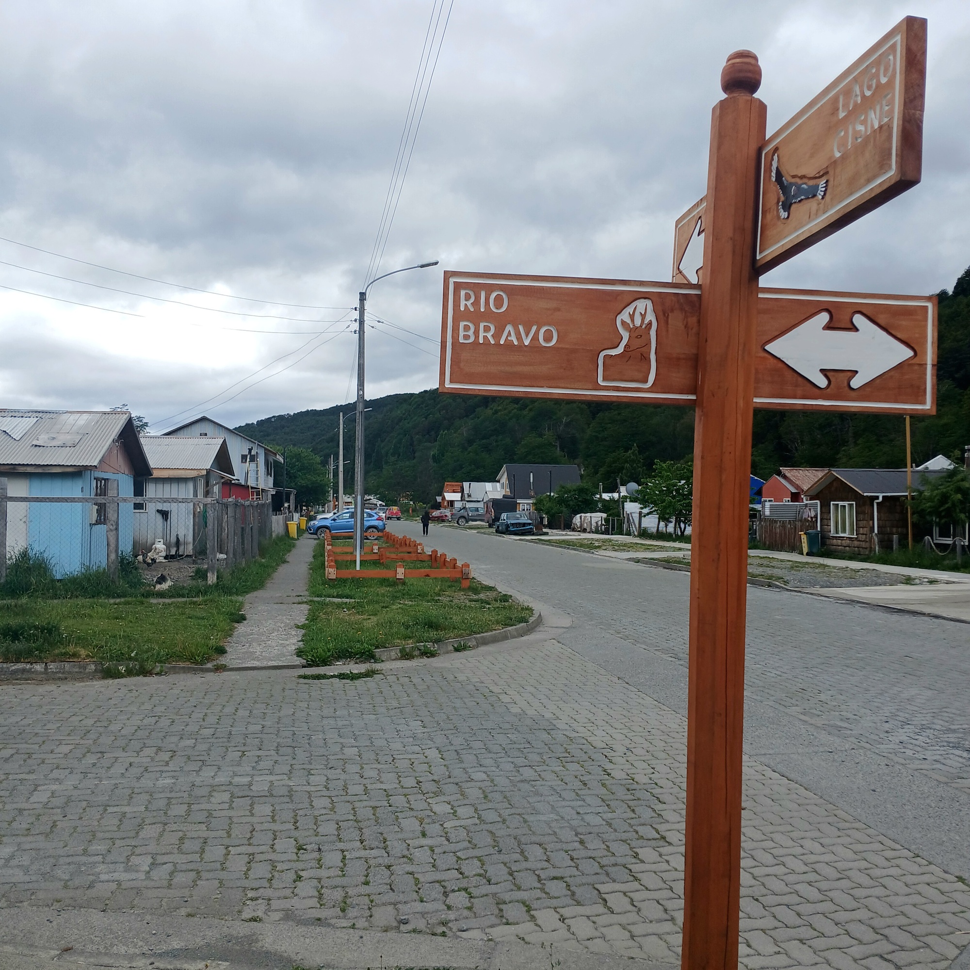 I bought my boat ticket for today, Monday; but, due to strong wind being forecasted, the sailing was moved forward to Sunday evening, so I missed it. The ticket though is tranferable to the next scheduled sailing. Thereby I'm here for a few days more. Not a bad outcome as although this is a small place, it attracts a lot of visitors and therefore has quite a few family run supermarkets and restaurants, so there is a good variety of food. Furthermore, located in a southern Andes valley, the scenery is stunning. There are a few hikes. Today I hiked up to a viewpoint on the hill to the east of town with a great panaramic view of Lago Cisne to the right, where the 7 comes down along, Lago Ciervo in the middle and Lago O Higgins off to the left. Apparently, the Northern Icefields are visible on a clear day when the cloud isn't down on the mountaintops like today.