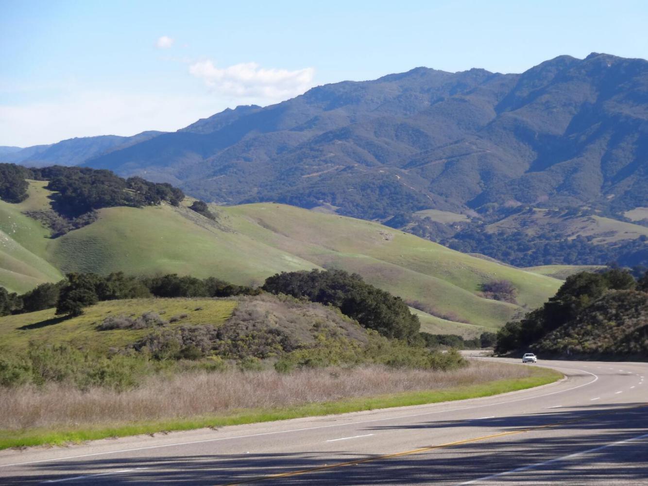 The landscape beyond Lompoc was much different from what came before. Here we found a ranch country, with mostly grass covered small mountains. Unlike western Montana, which it resembles, this place is a soft green rather than a soft yellow. The hillsides at first were rocky, with exposed strata and quartz in the stone, but later seemed to be mostly sandy.