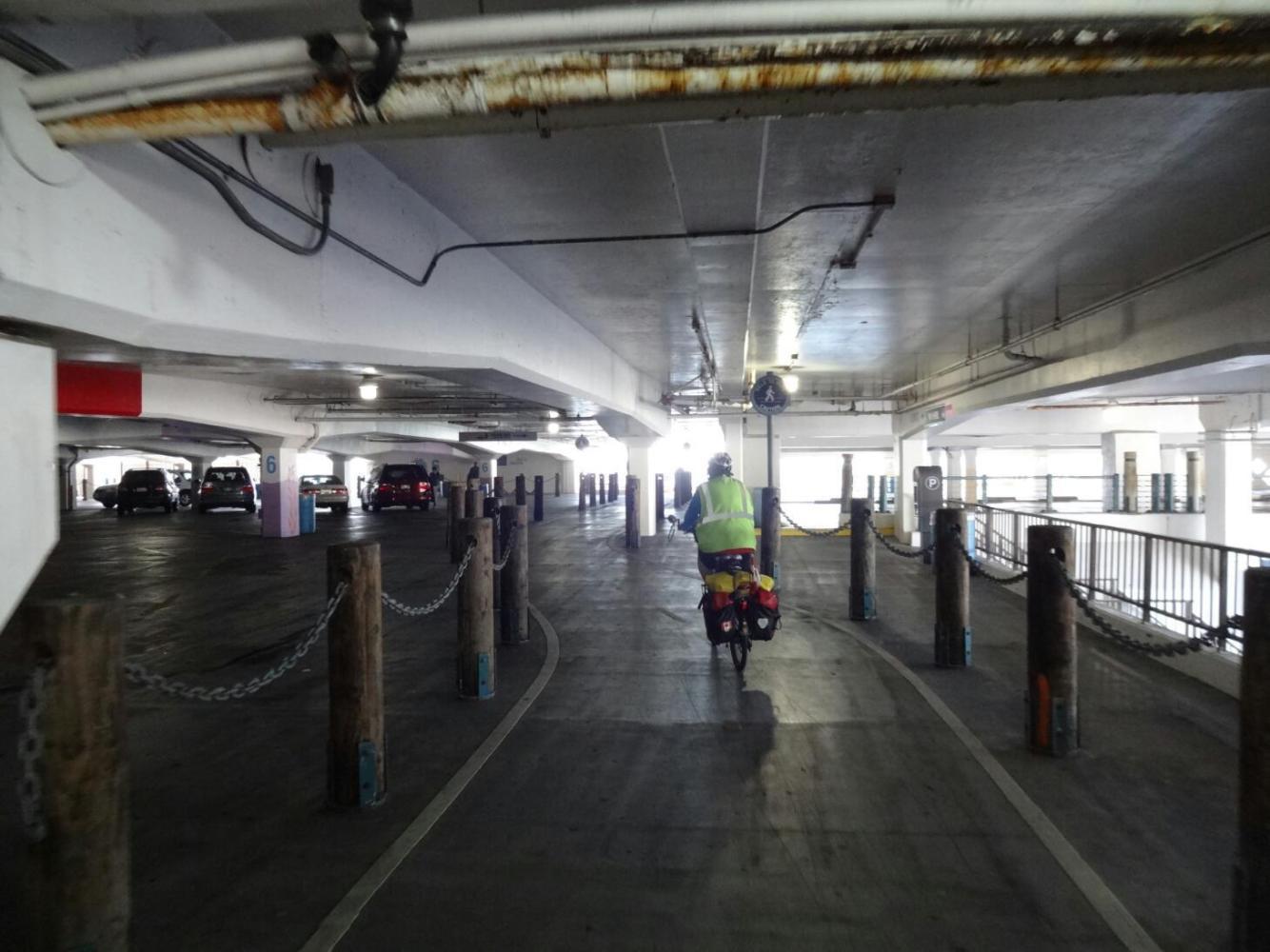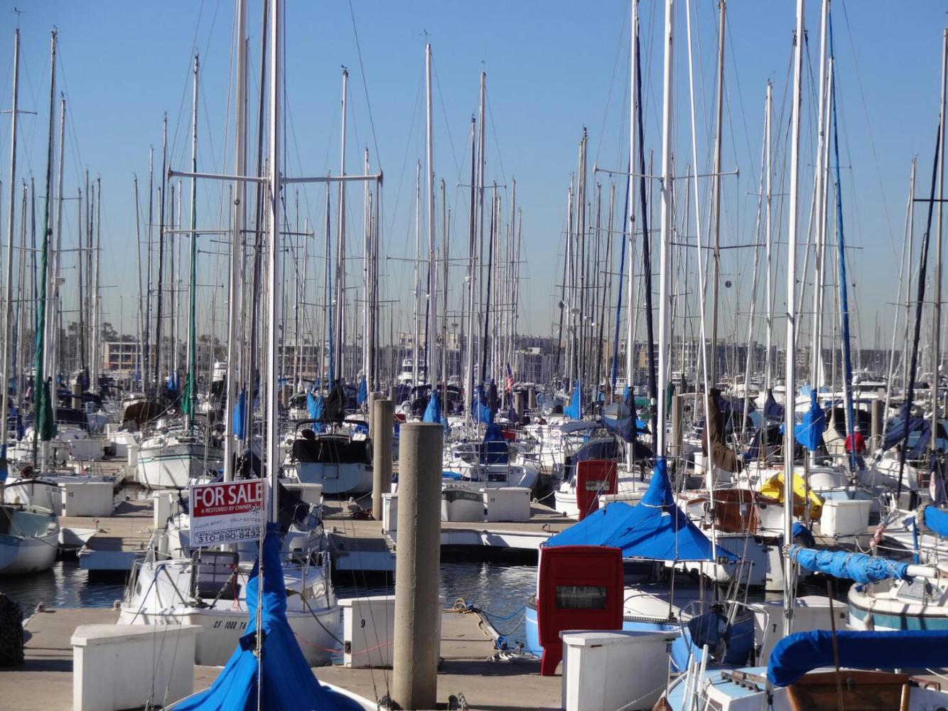 The route leaves the beach to skirt around Marina del Rey. Here is a whole other world of sailboats, moored or for sale at dealerships. We also passed the Marina del Rey Cheesecake Factory, making us think of Penny, from Big Bang Theory. Of course, her fictional Cheesecake Factory would be in Pasadena - quite far inland.