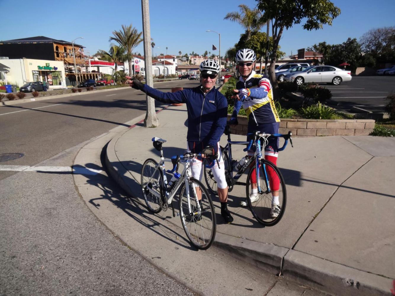 At Redondo Beach the route leaves the beach and takes an inland shortcut to Long Beach, passing through Torrance and Carson. We had trouble finding the way, but some road angels popped out of the sand. First, Fred got us off the beach and pointed in ther right way, and then Bruce and John took us on a tour that landed us properly on Torrance Road. Thanks fellows!