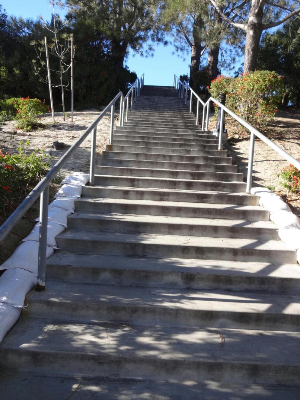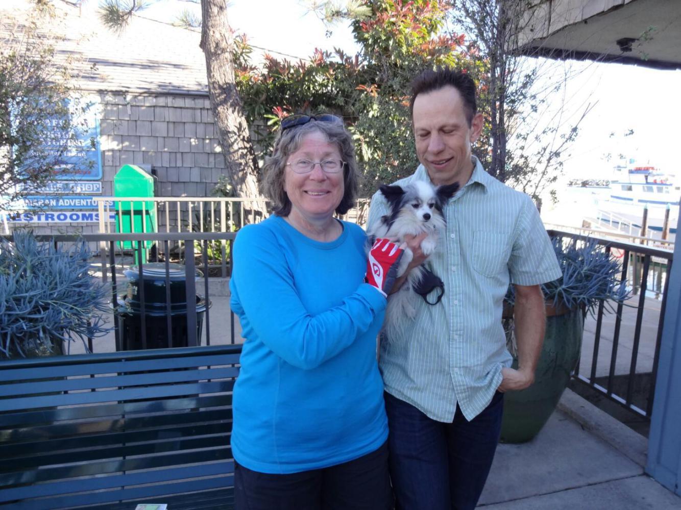 Finally, mercifully, a bike lane appeared. We cruised in to Dana Point. Here our map and also book broke down into a lot of confusing directions. So we happily followed a "Bike Route" sign on the highway. This lead us to a dead end at a place called Heritage Park. No further signs, but a worker directed us to a path. We followed this steeply downward until it ended at a long set of stairs. Grrrr. But, Dodie found a way around the stairs and we descended, achieving the transition from lost up high to lost down low.