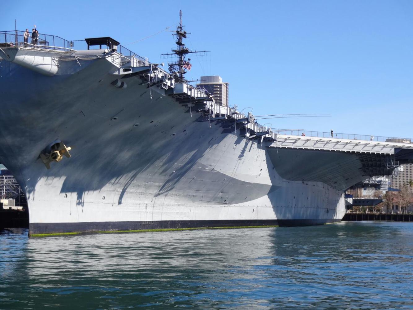 Eventually we came to the San Diego itself, and this was a revelation. The high rise buildings are clean looking and nicely spaced, and they stand back from the waterfront. The waterfront has lots of activity, with various ships moored - a pirate type ship, a large-ish cruise ship, a navy aircraft carrier, and many tour boats. It was all at a friendly and livable scale, and just generally looked like fun.