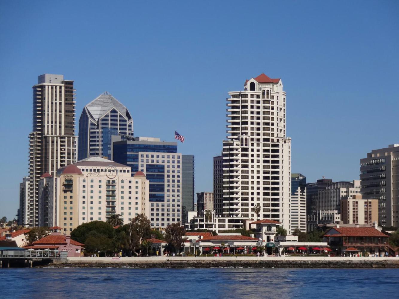 In the light of the setting sun, the San Diego buildings looked even more fetching.