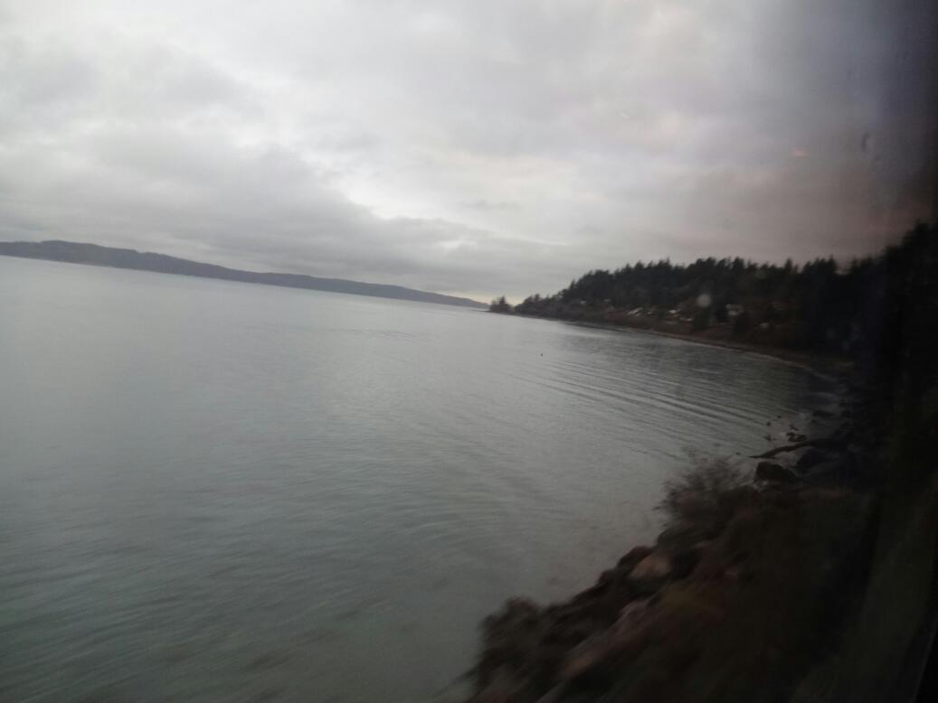The train ride revealed just how far we had " fallen" from our glorious time in San Diego. The sky was grey, the sea was grey, the trees were grey. Cold looking mountains loomed to the East. Still, we enjoyed riding the train, as always, and it did its job of easing you from one environment to the next, much less abruptly than happens on an airplane.