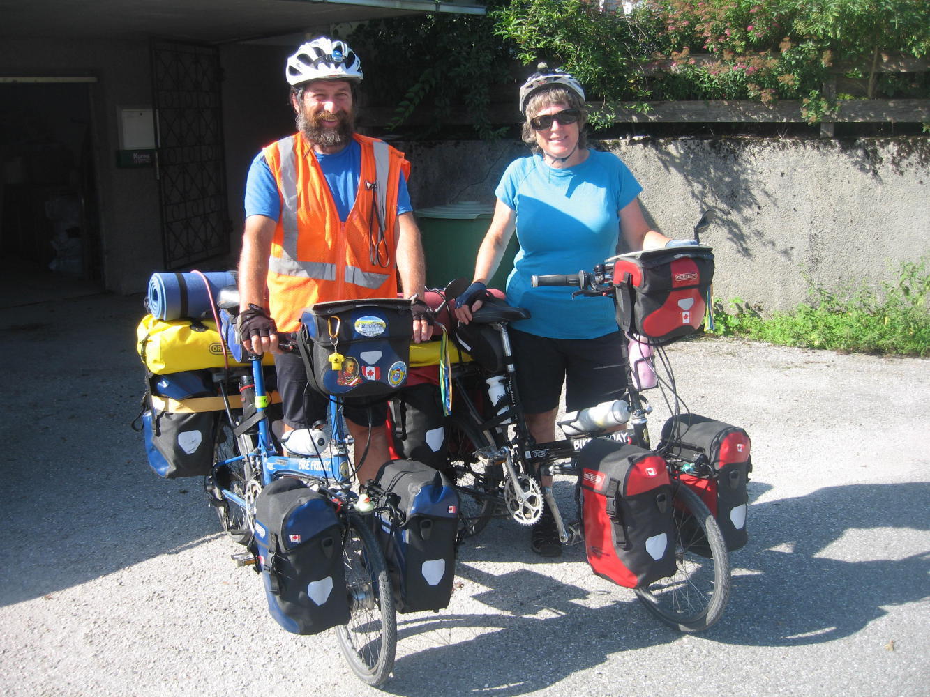 As for folding bikes and the train - we bought the folders to avoid the hassle of boxing full sized bikes for Amtrak. Now Amtrak (and PCL) has hassled us about the folded bikes. We still actually like and prefer the ride of the Bike Fridays, but we may give up on folding them, and give up on rear panniers. Instead for travel in the U.S. we could go back to bike boxes and to using the Bob trailers. Art Birkmeyer has shown that despite any demands a particular Amtrak agent may make, it is reasonable to fold and bind up a Bob trailer as a piece of unboxed baggage. Also, where Amtrak trains crossing the border do not have baggage cars, we will probably go back to bicycling across. For overseas jaunts our hardshell cases will probably be our first choice, with the problems, of course, of either finding a place to store them and doing an out and back tour, or shipping them ahead to our final destination and finding storage for them there.