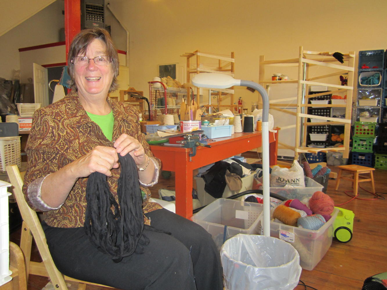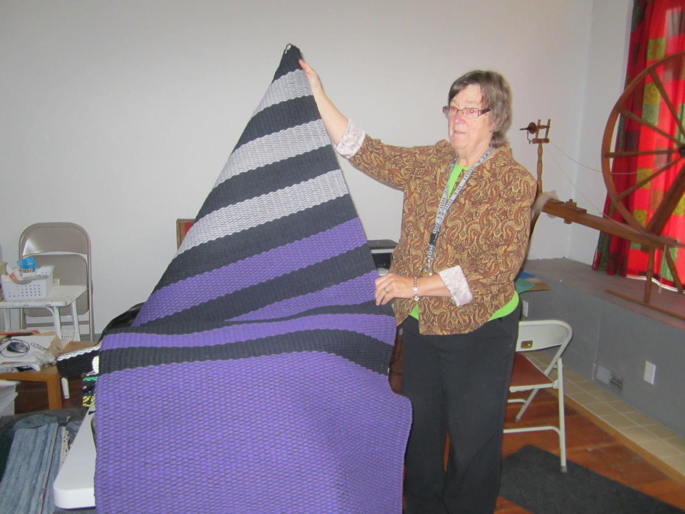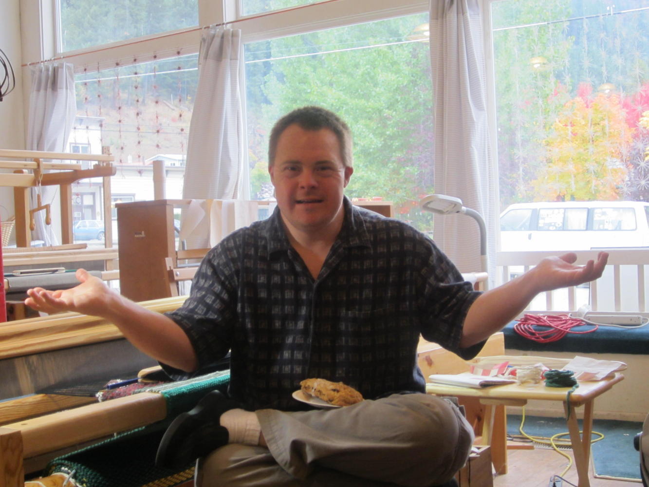 But in Mullan we ran into the Johansens. There at the snowy mid point of the slope to the Lookout Pass, they fed us, put us up in a studio, brought us wood for the stove, and guided us around the area. Nancy, Harley, and son Peder live in a large brick building that had housed various businesses in the past. There Nancy and Peder produce woven rugs in the Nordic style.