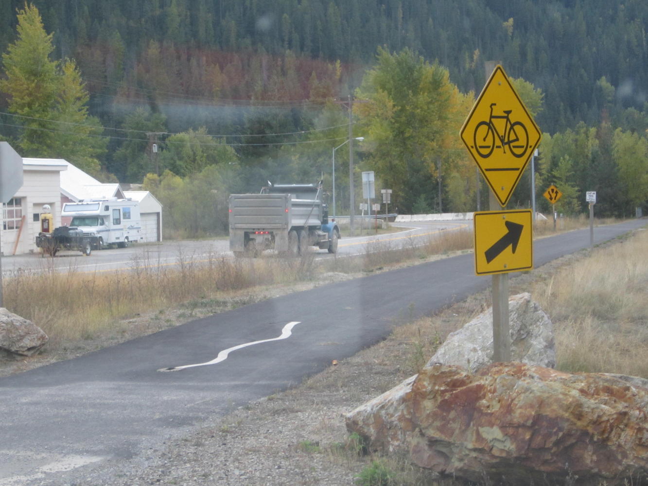 In the summer, by the time we reached Mullan, Idaho we had already experienced most of the sensations that riding has to offer. We had been rained on, collapsed (repeatedly) by the trailside, been lost, suffered mechanical failure. We had also run in to some wonderful people, and ridden by hills and lakes and on paths that were a delight.