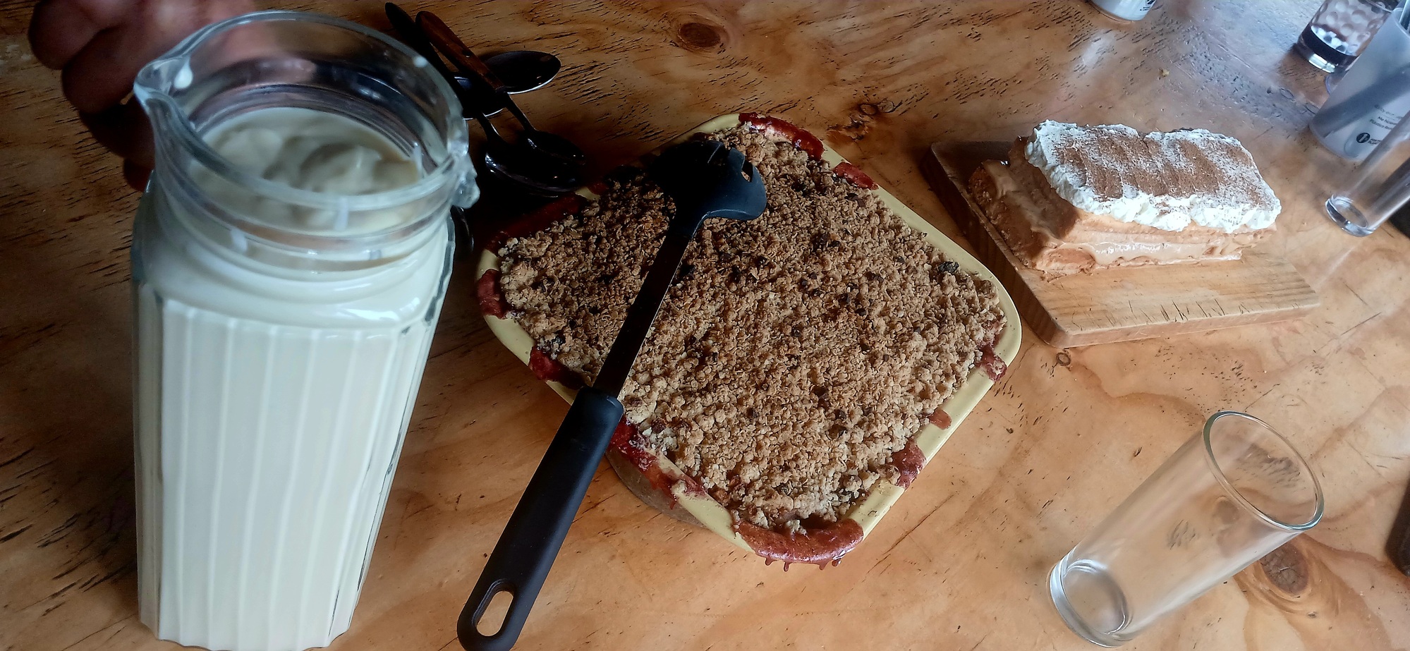 What better way to counter rainy day blues than through activity and it was thanks to Phoebe for suggesting we, the eight of us in the hostel, cook a big communal lunch with everybody contributing a specific part. I chose the easiest; cooking the rice. The least effort for the most gain. The meal ended up Indian themed with Marc making a tasty lentil dal. There was salad, nam bread. Miguel made torte for starters. And for afters, there was apple crumble with freshly made custard and carmel pudding. Lots of wine was consumed and it felt like Christmas.
