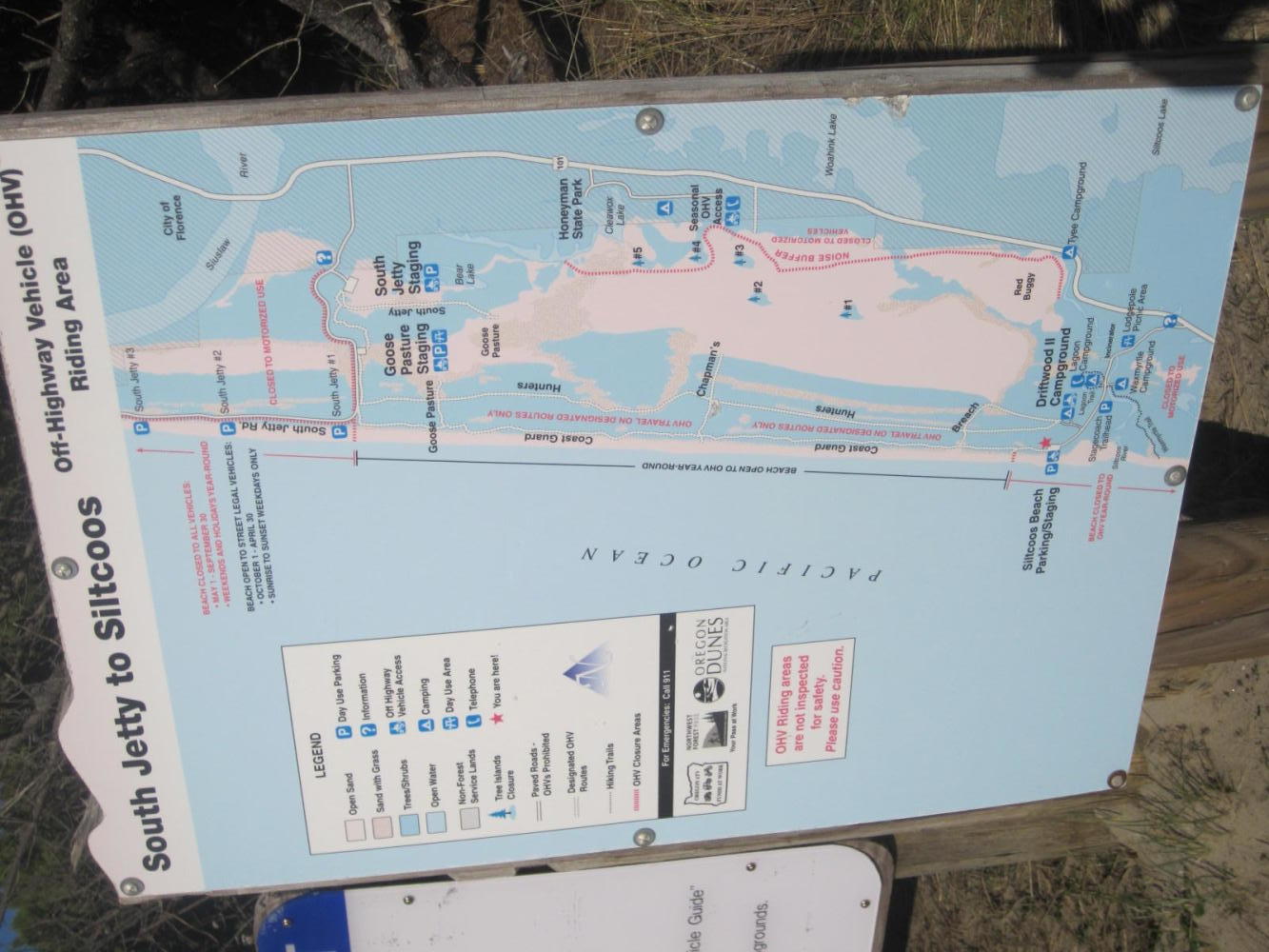By mid-day the sun was shining and we were sitting at a picnic table surrounded by sand dunes at the beach. Life once more seemed good, but the die was cast. We headed back to our camp, semi-expertly folded our bikes into their bags and beat it South. Goodbye beautiful forests and dunes, next stop California!