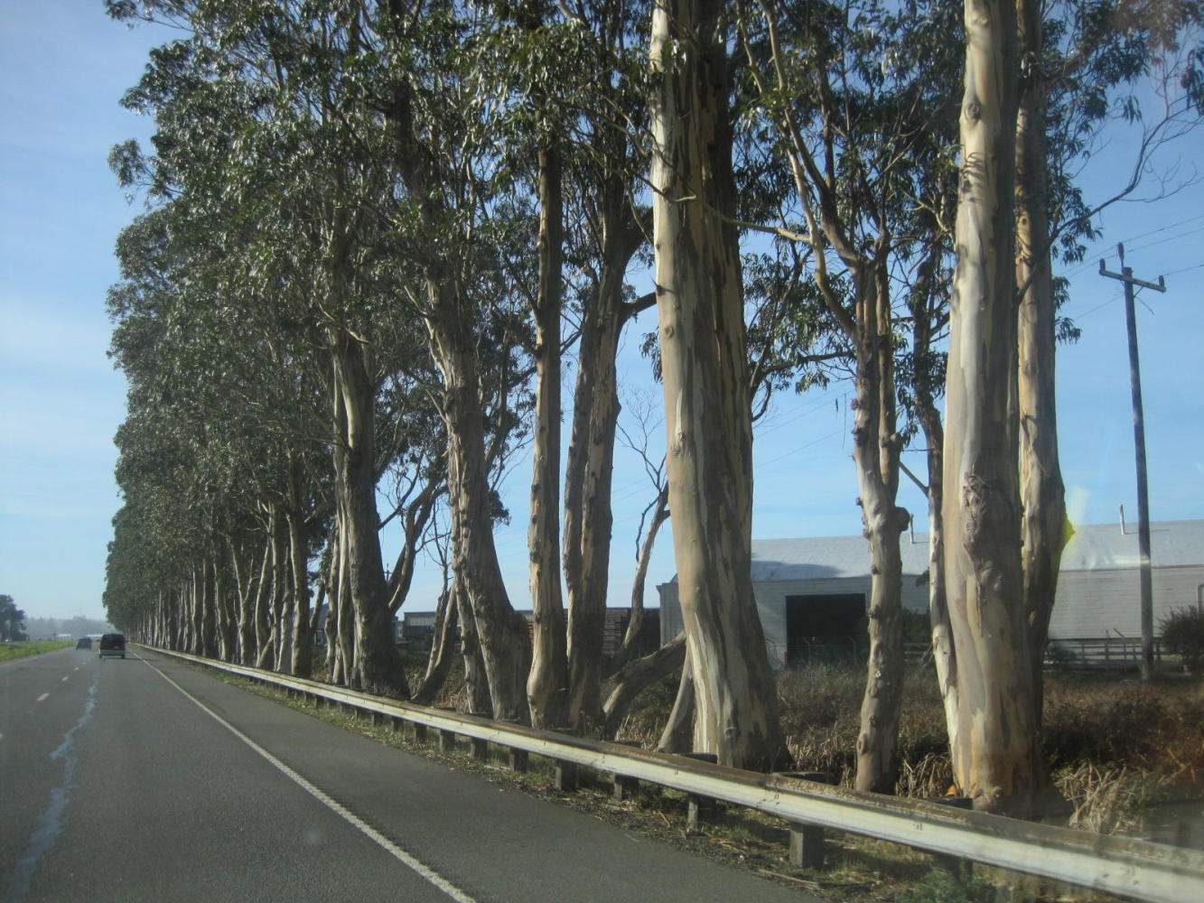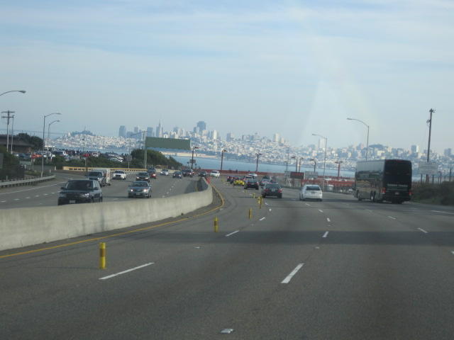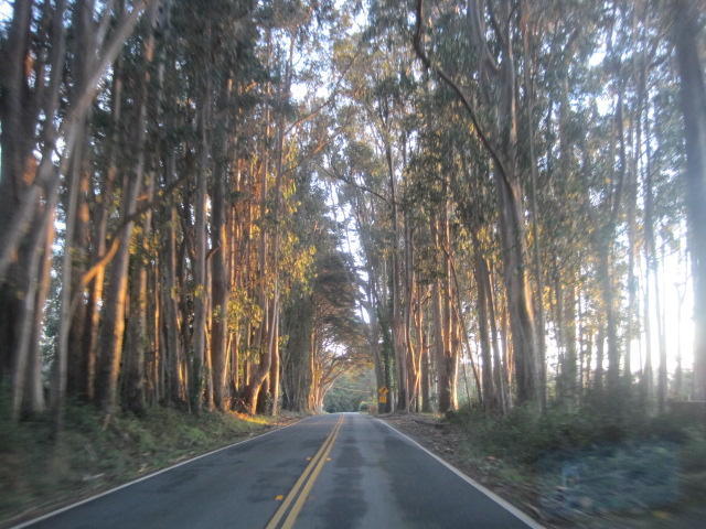 With our slow but van assisted transit down the coast, these sudden changes are once again apparent. Crossing from Oregon, the Redwoods suddenly appeared. Now approaching and passing San Francisco, first there were Eucalyptus type trees: