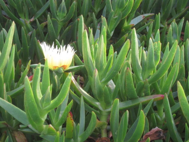 Next came lots of "tropical" looking evergreen varieties, and finally, just south of San Francisco - the beach with Ice Plants and flowers. Some palm trees are even now on view.