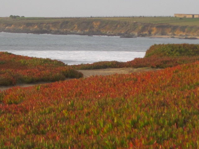 Scanning the Cycling the Pacific Coast book, we have cherry picked some nice rides. Tomorrow we will be along the Half Moon Bay to New Brighton State Beach (Santa Cruz)section, and the next day, New Brighton to Vets Memorial Park (Monterey). We chose these for road with shoulder or at least low traffic, and not so many hills. But the real WOW factor is the ocean, the shore line, the plants. There are many gorgeous places to cycle in the world, and many bad spots. This is most definitely way up there in the first group!