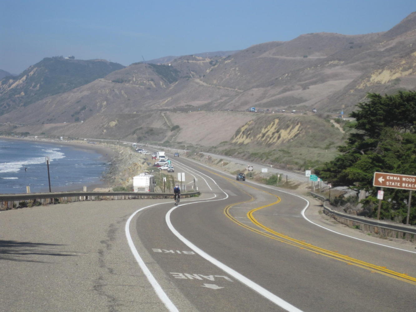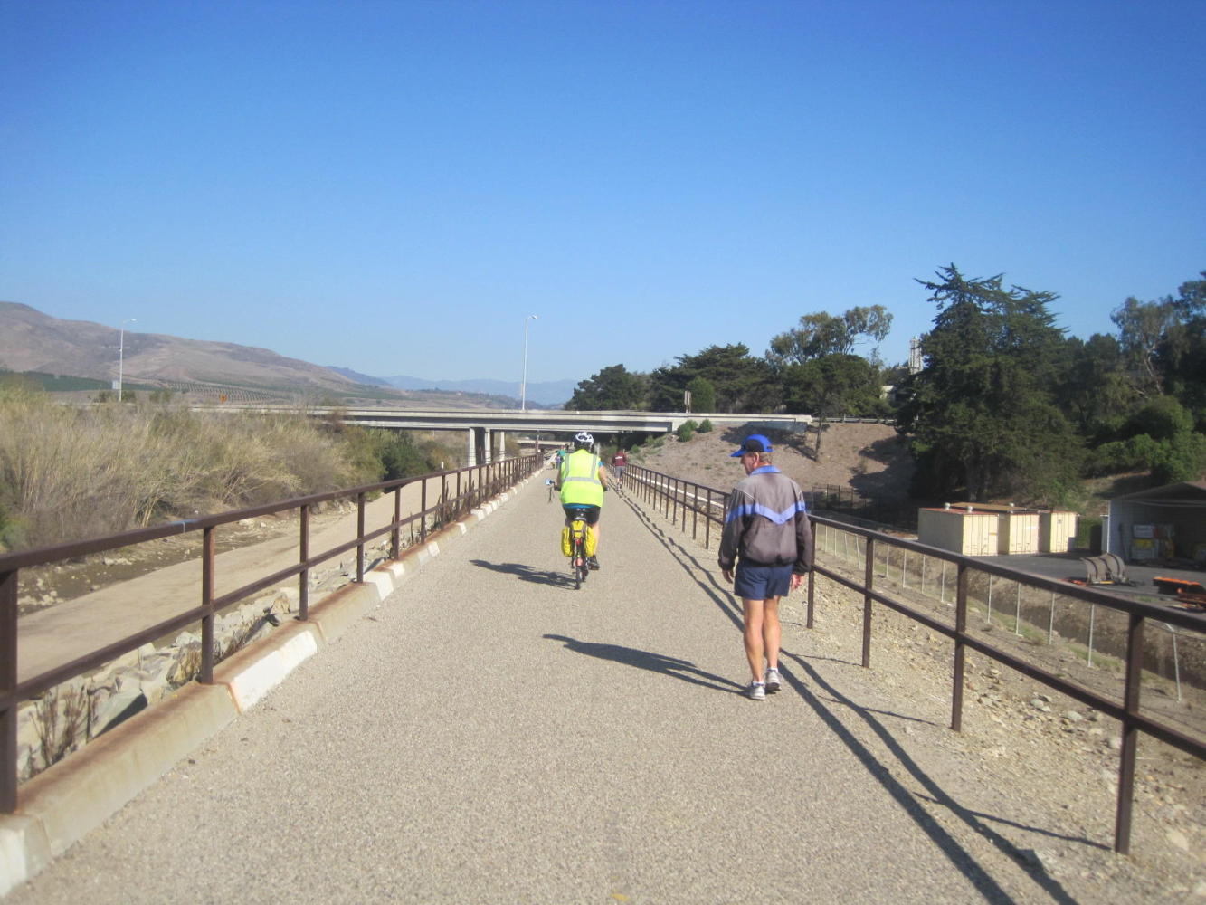 The ride started on a bike path that had lots of joggers, switched to a bike lane on Hwy 1, and ended with the shoulder of the freeway (Hwy 101).