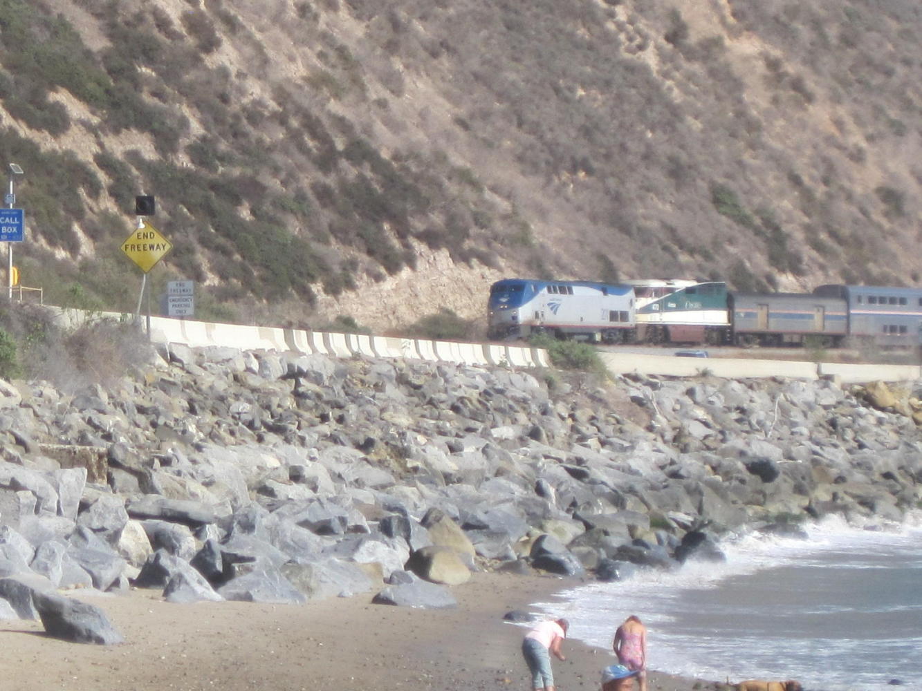 We have to hand it to Southern California. When it comes to delivering the goods on entertainment it is hard to beat. Much as we enjoyed Half Moon Bay up North, today's ride had this: Broad sweep of open beach with long rollers crashing in, surfers out on the water in wetsuits or gearing up from many parked cars in beachside parks, palm trees and other tropical foliage, adjacent high cliffs, bright blue sky and soft air - shorts and t shirt stuff, gentle breeze, no hills.