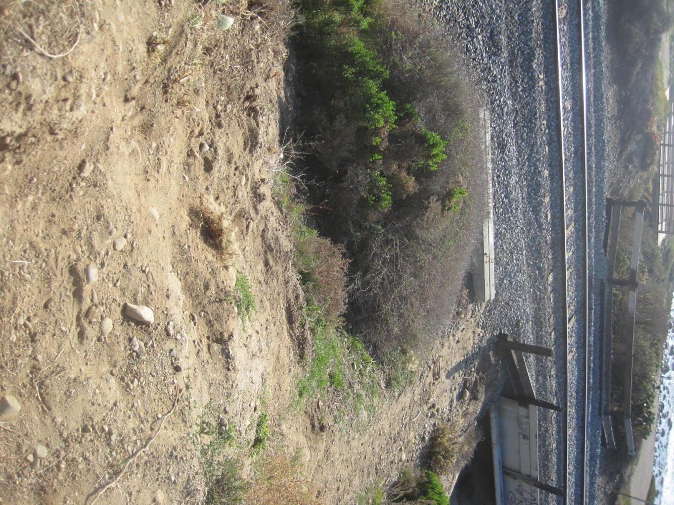 Bike path, Hwy 1, train tracks, and freeway 101 intertwine a bit on this stretch. At Emma Wood State Beach we stuck to travelling by the water, but the pavement ended. We had to carry the bikes over the tracks and up this steep embankment to regain the bike path.